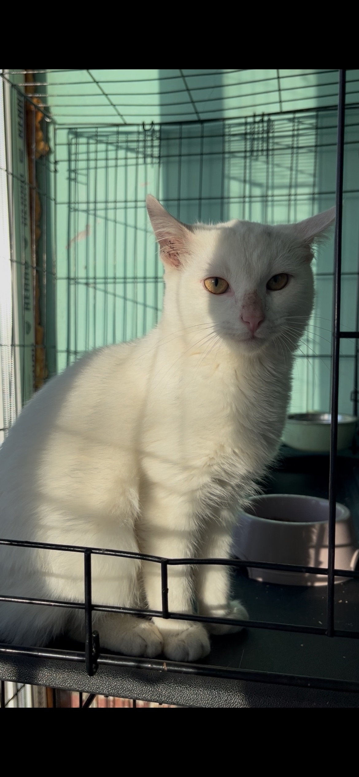 Не известно, как такая красота оказалась на улице. Видимо со страха сначала пряталась под грудой старых шин, на территории автосервисса, но потом все же вышла за помощью к людям.