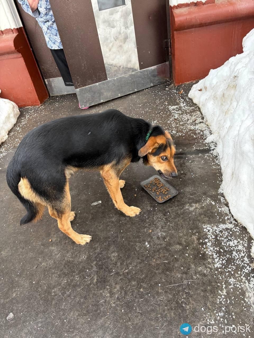 Замечена собака, по словам жителей ходит уже несколько дней так. Часто обитает около дома (ее подкармливаем тут). Зеленый ошейник
