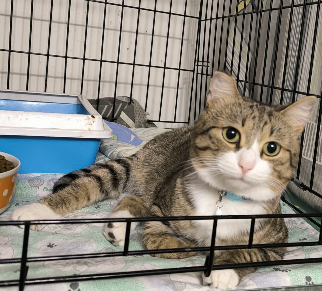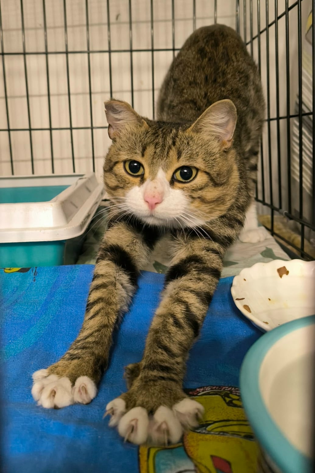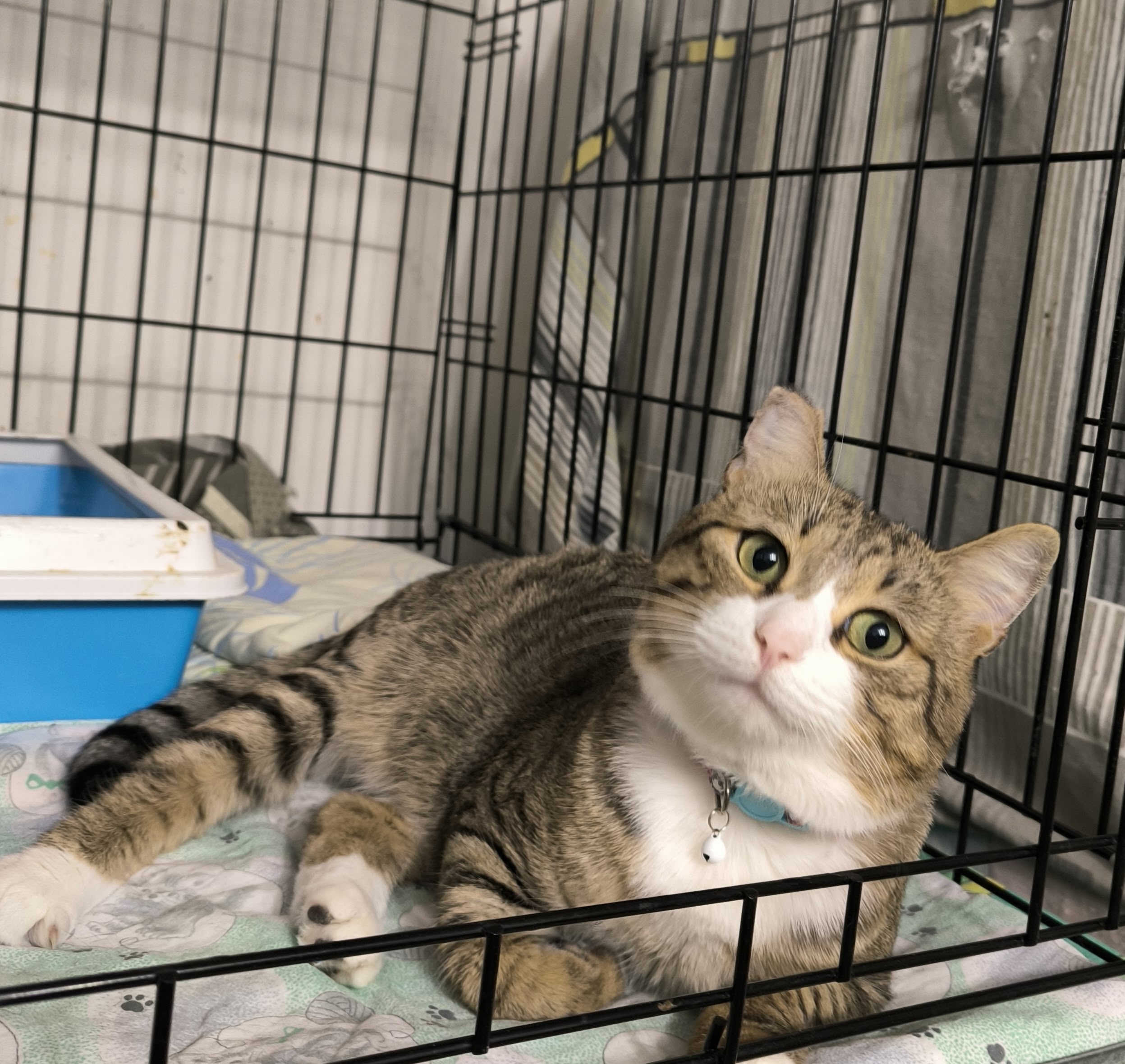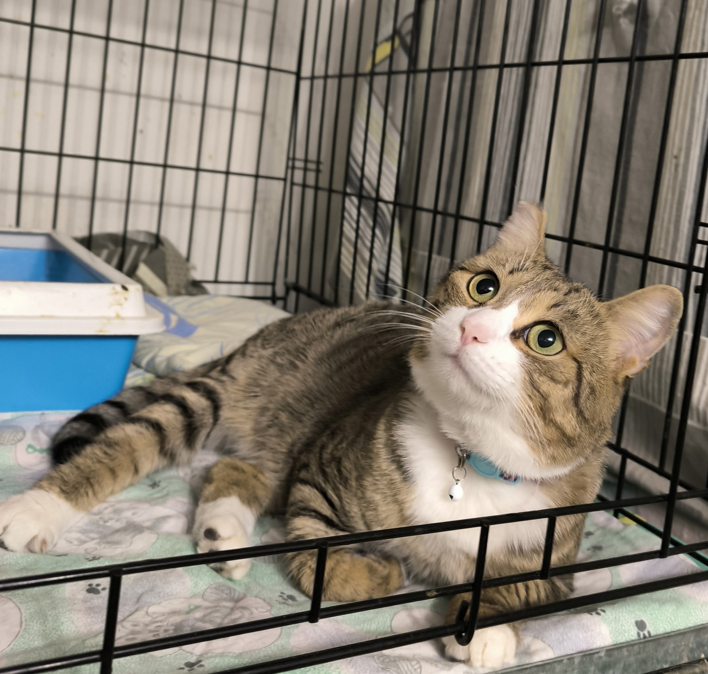 Отлично освоил лоточек с наполнителем и ждёт не дождётся, когда его выпустят из клетки.