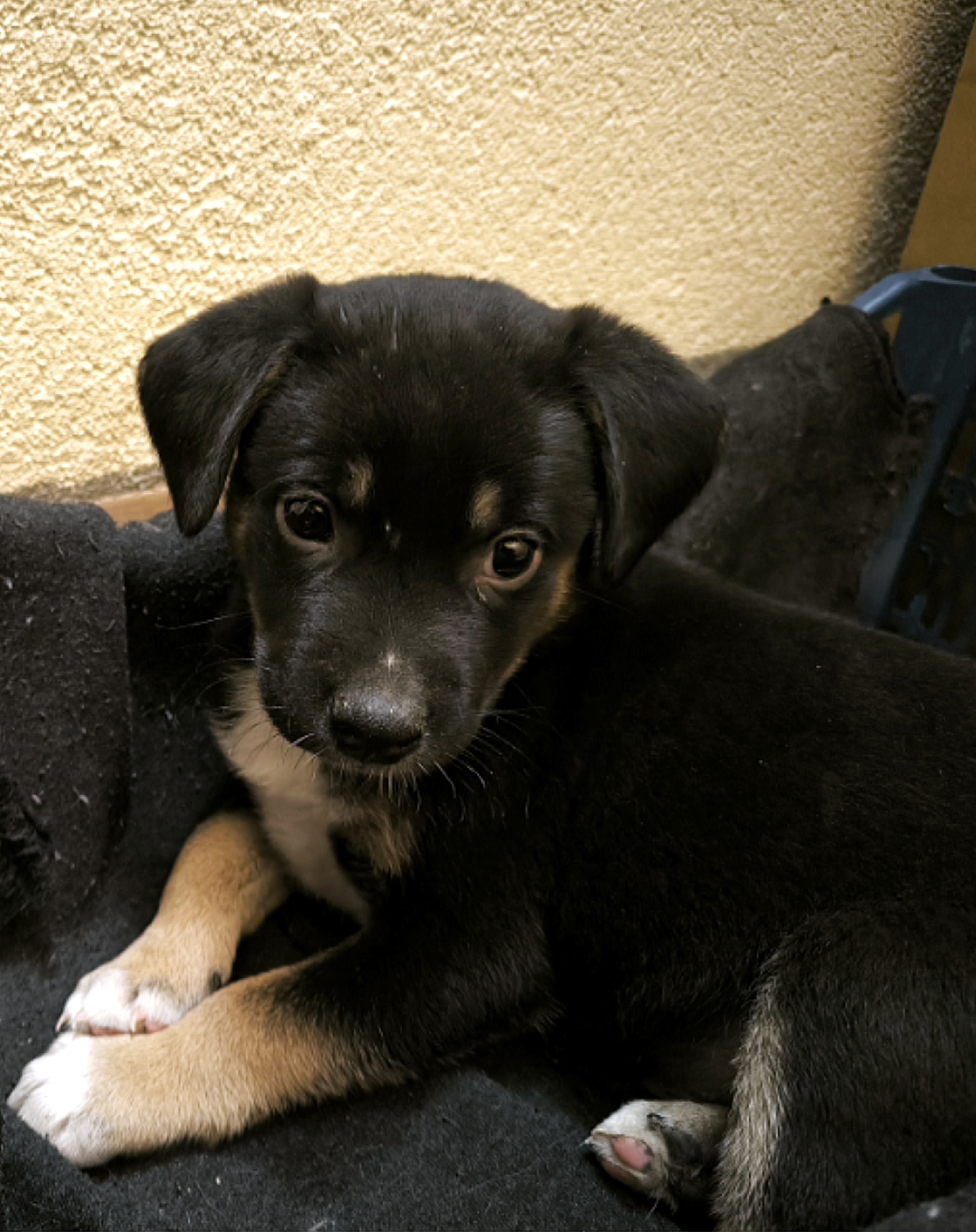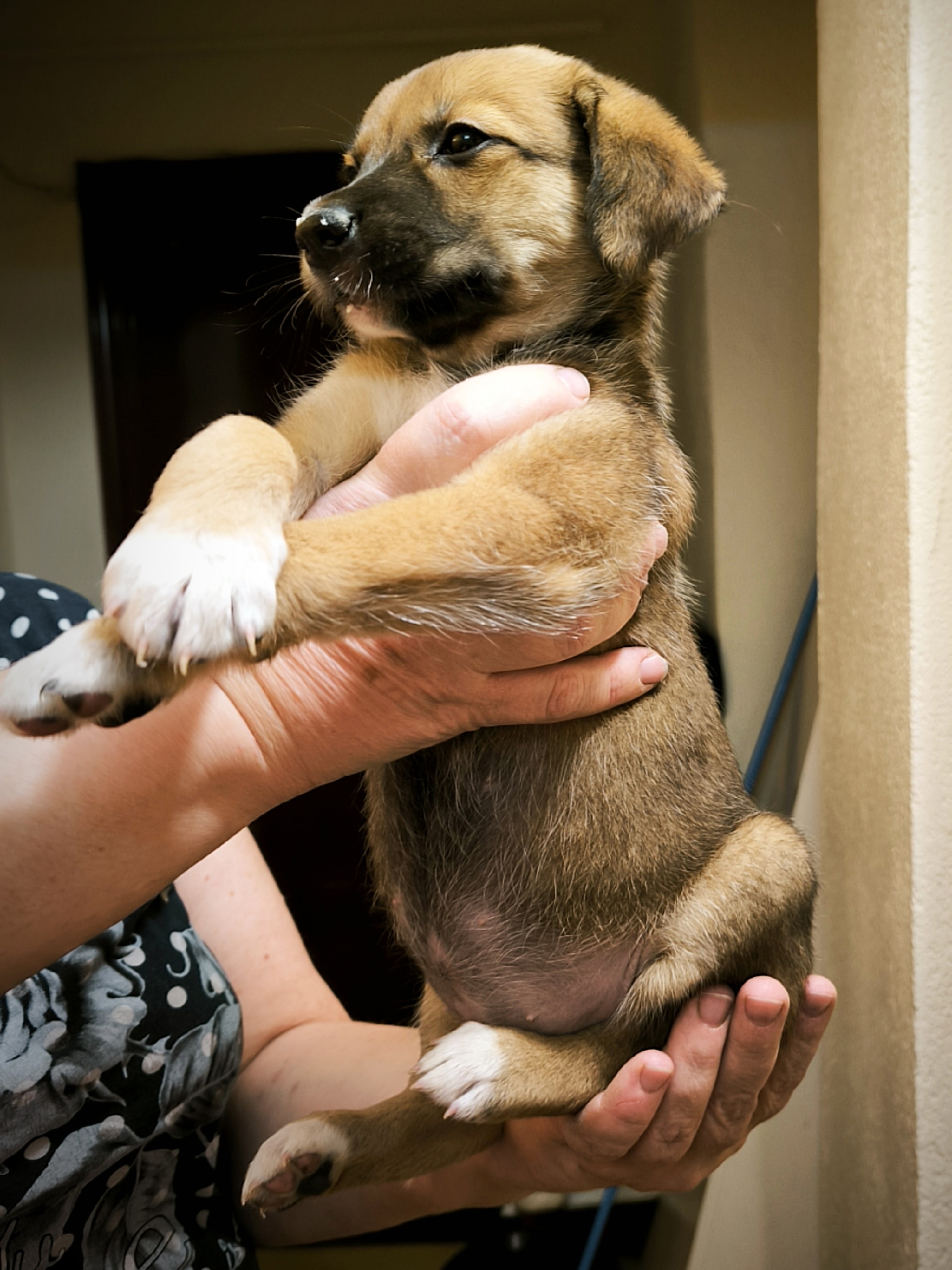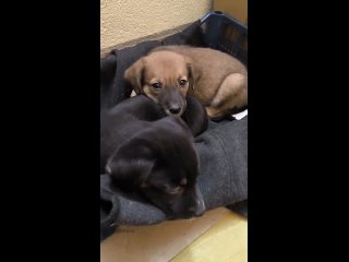 Щенята чудесные, очень милые. Тёмный мальчик пытается играть, светлая девочка пока застенчивая.
