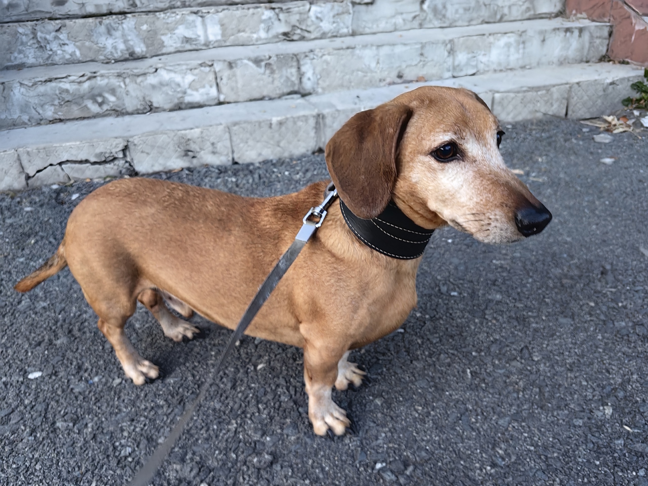 Знакомьтесь, Лаки. Такса, кобель, возраст 7 лет. Приучен к выгулу на улице, домашней еде. Уживается с другими питомцами (у хозяйки дома ещё кошки). Очень позитивный, ориентирован на общение с человеком.