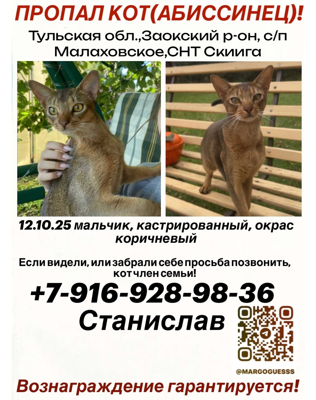 ВНИМАНИЕ ‼️ Пропал кот (Абессинец) коричневый окрас! К чужим не..