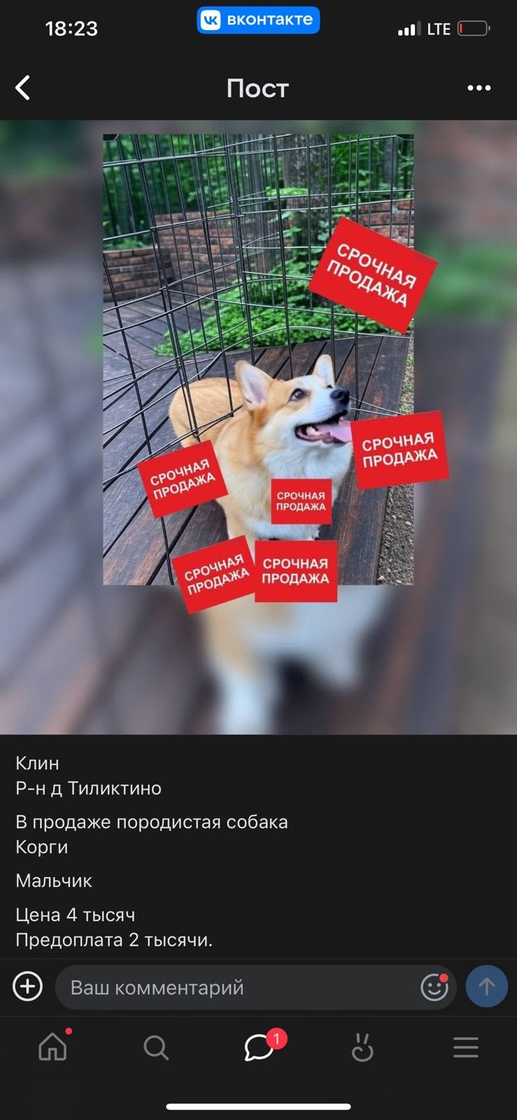 Недавно мы получили сообщение о том, что какой-то мужчина продаёт корги за 4000 рублей. Фото было сделано с помощью искусственного интеллекта, а текст объявления был построен так, чтобы опять вызвать эмоции и начать торопится выкупать своего собакена