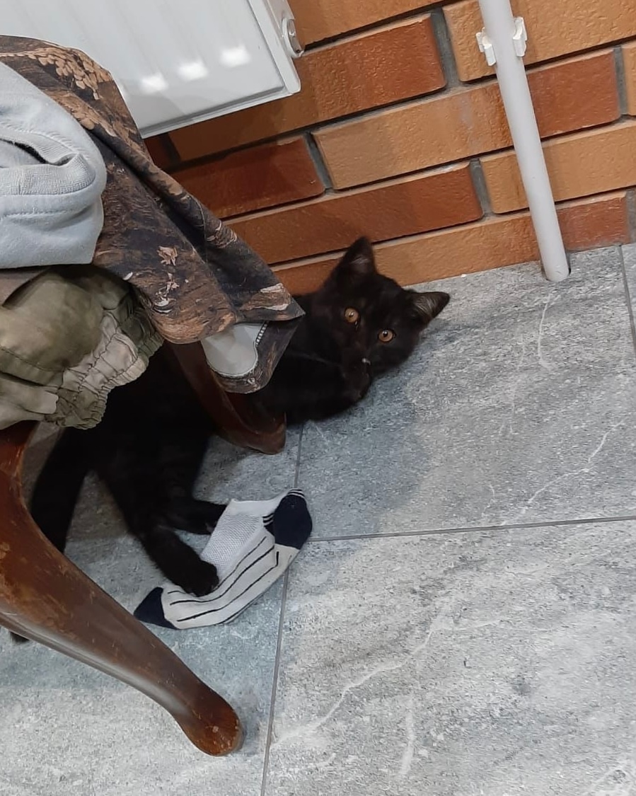 Внимание! Потерялся котенок-подросток черного цвета с белым..