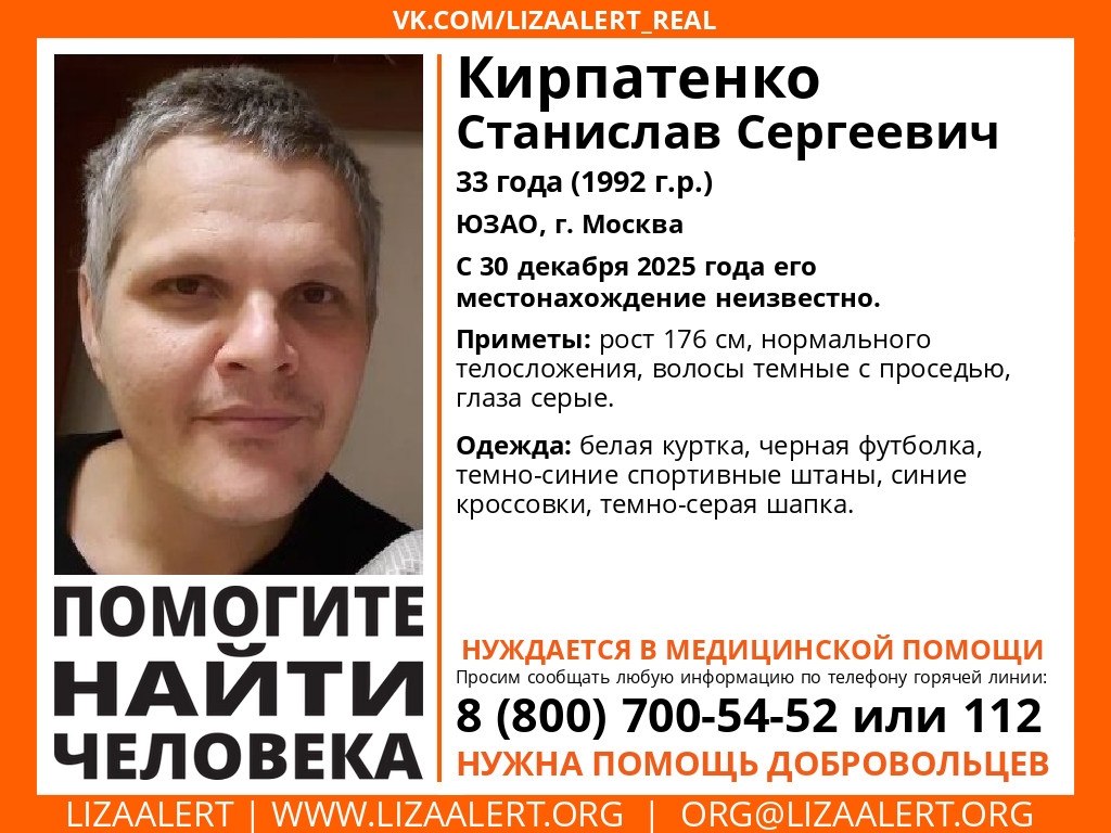 Внимание! #Пропал человек! #Кирпатенко Станислав Сергеевич, 33..