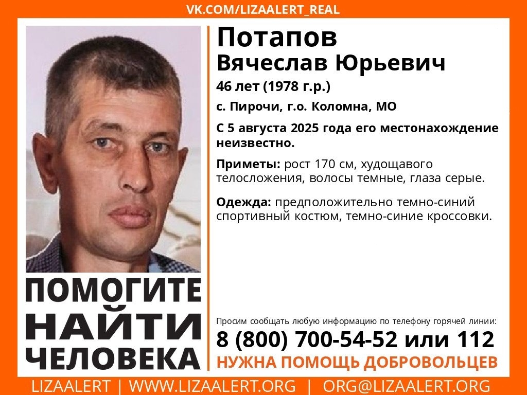 Внимание! #Пропал человек! #Потапов Вячеслав Юрьевич, 47 лет, с…