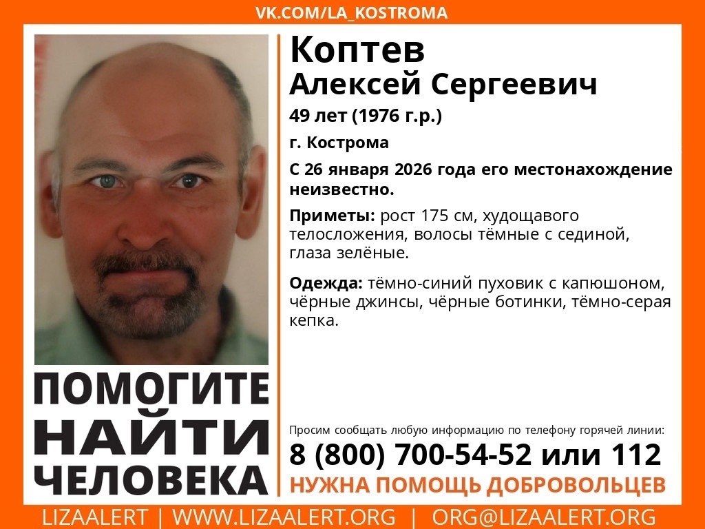 Пропал #Коптев Алексей Сергеевич, 49 лет, г. #Кострома.
