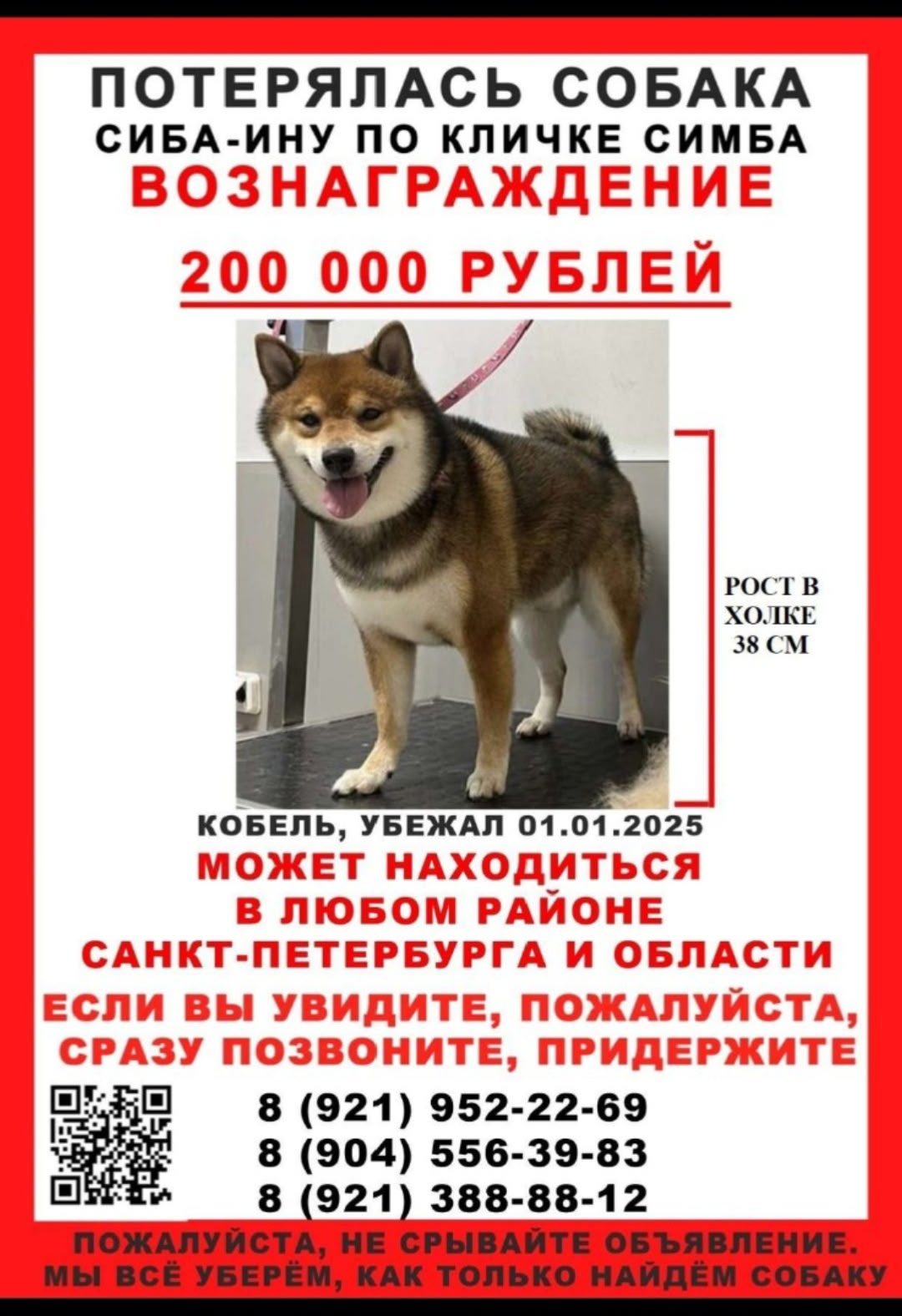 Потерялась собака породы Сиба-Ину, кобель. Кличка Симба. Цвет рыже-черный, рост 38 см( по колено)