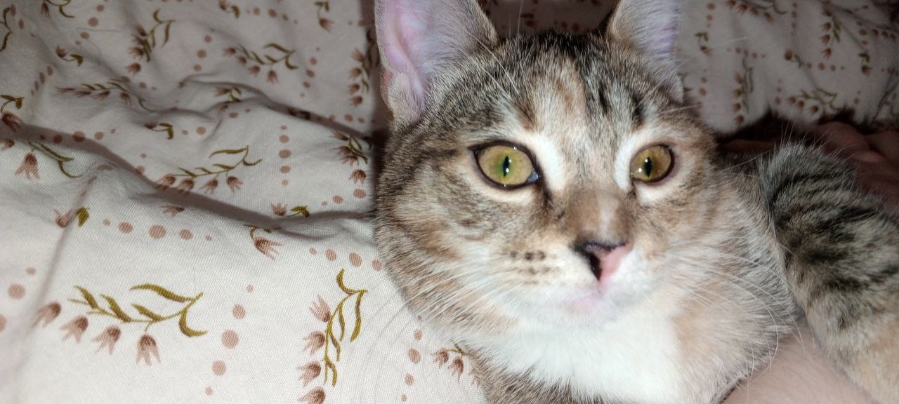 Очень боязливая кошка, незнакомых людей боится и всего другого, но так-то добрая.