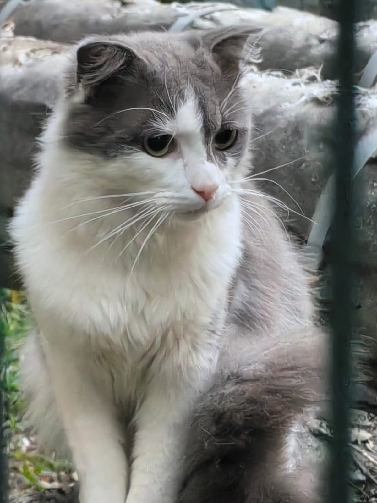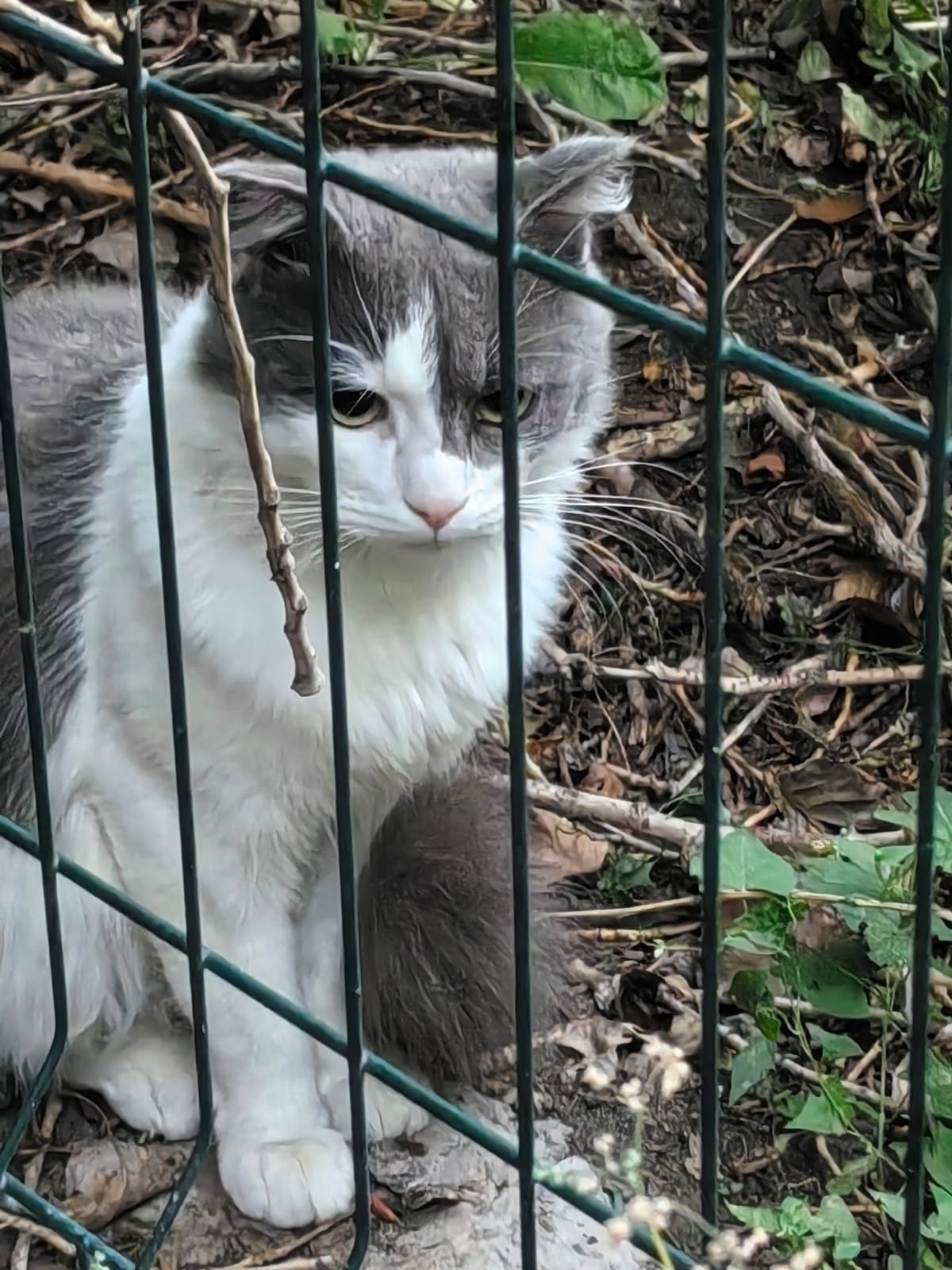 Во двор прибился молоденький котик. Местные коты обижают, гоняют..