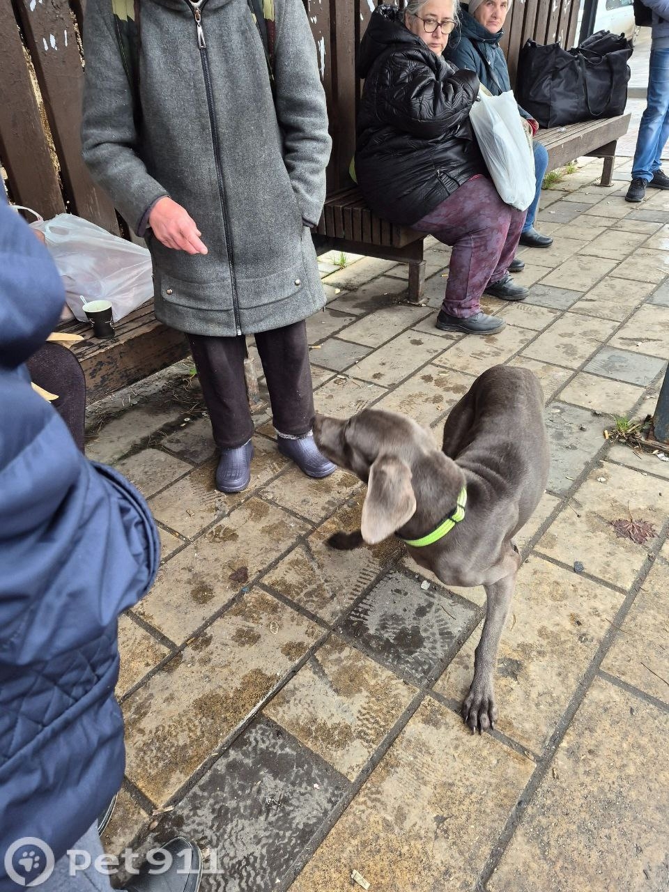 Серый, гладкошерстная, хвост купирован наполовину, кабель, салатовый ошейник, породистый, Веймаранер