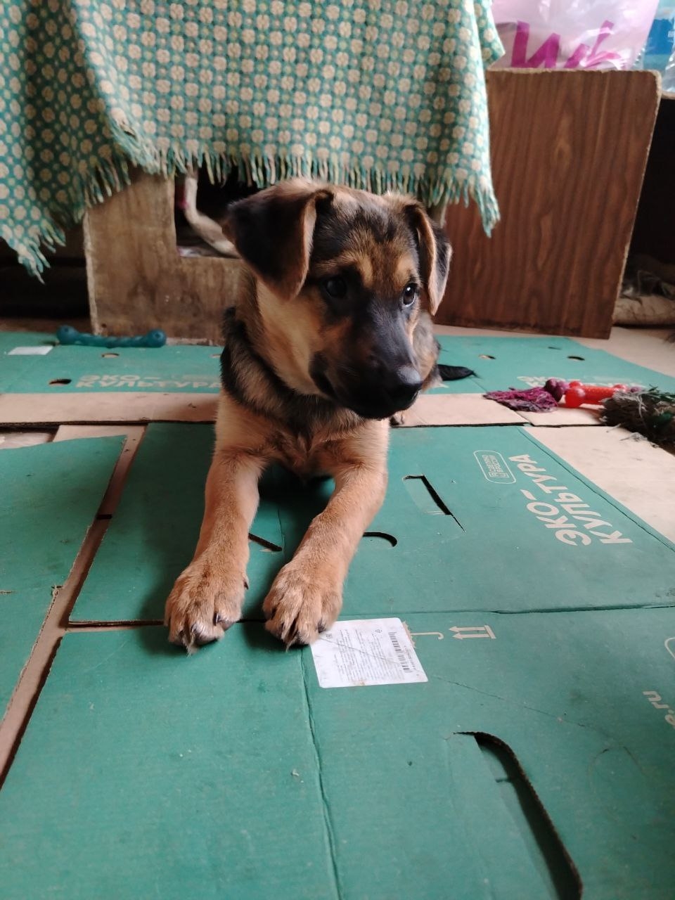 Эта малышка вместе с сестричками была спасена из ямы в поле у дороги. Сейчас она в безопасности, но очень нуждается в своём доме и заботливом человеке.