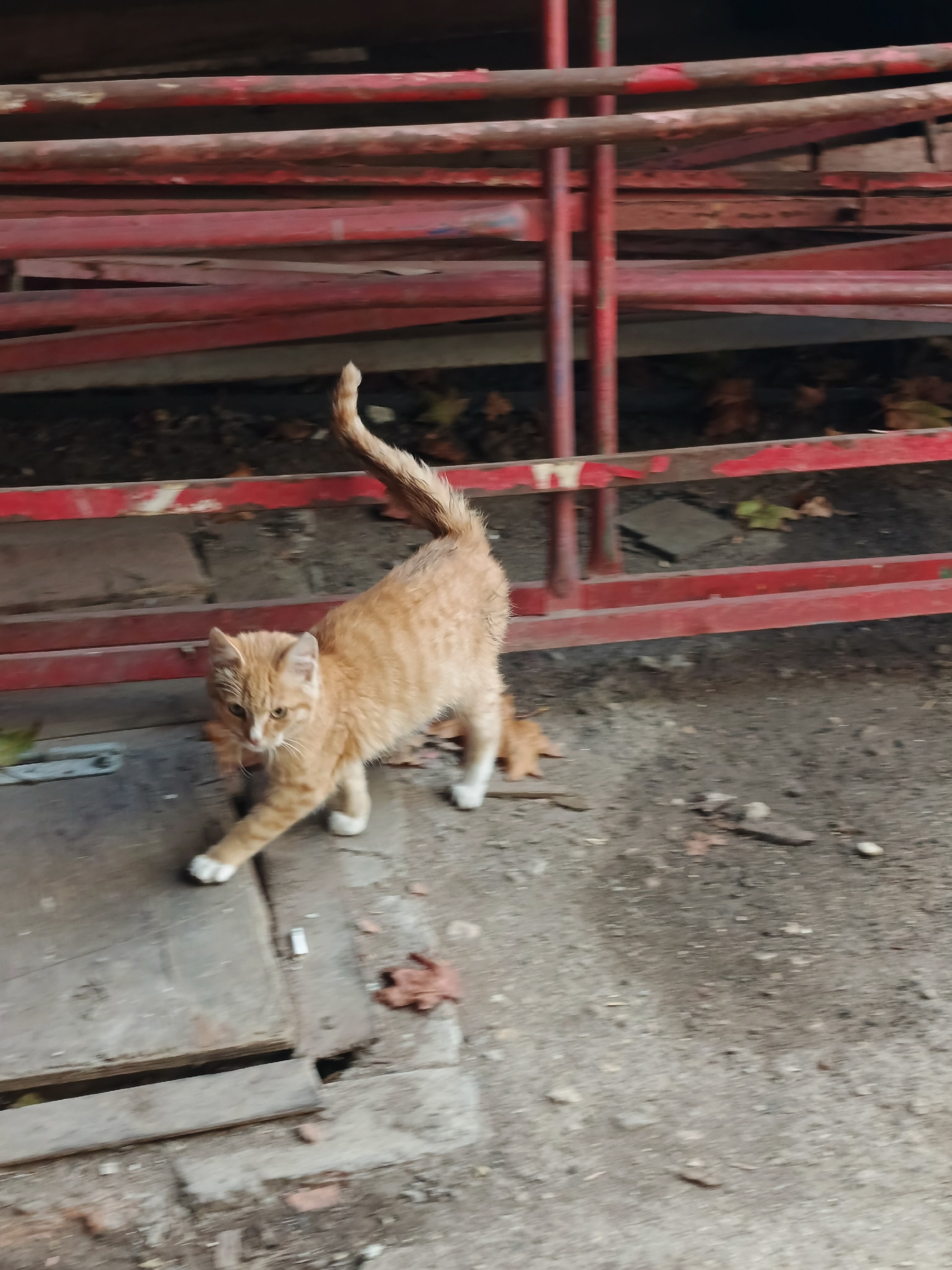 Вот такой маленький появился на базе, ходит мяукает, долго он здесь не задержится, т.к. рабочий разводит голубей и травит всех кошек. Может кто нибудь откликнется забрать котенка, пока не поздно. 8960-610-04-13