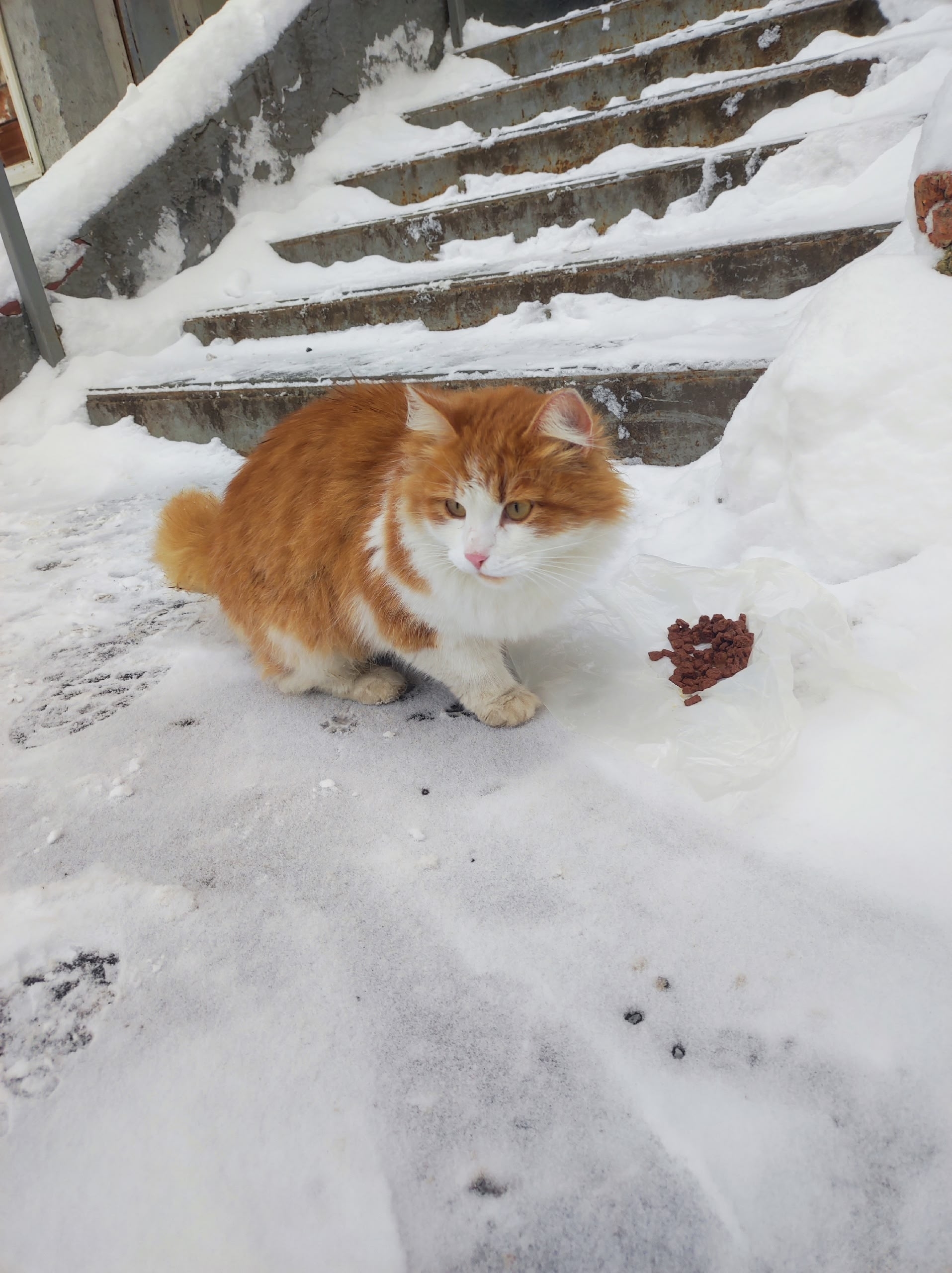 Возле дома по улице Степана Разина появился кот, очень красивый, пушистый, видно, что домашний, за всеми ходит, мяукает. Кто потерял? Заберите его домой.