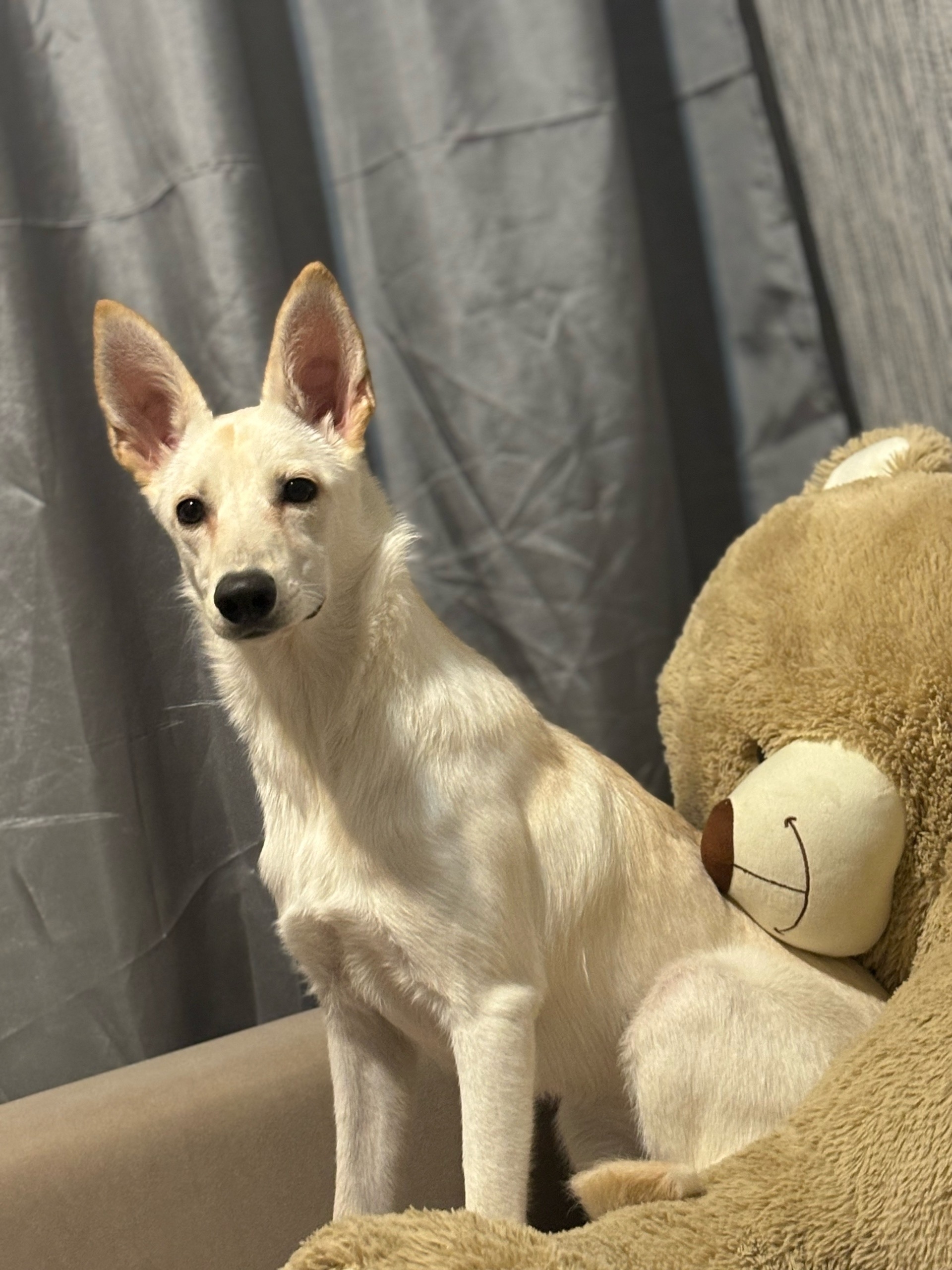 зовут Мия, белого окраса, из особых примет, у нее ярко рыжее пятнышко между ушей (как родимое пятно)