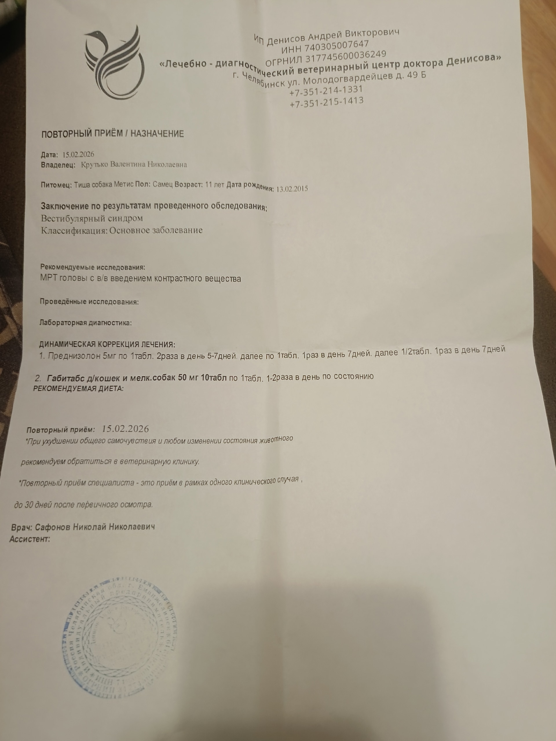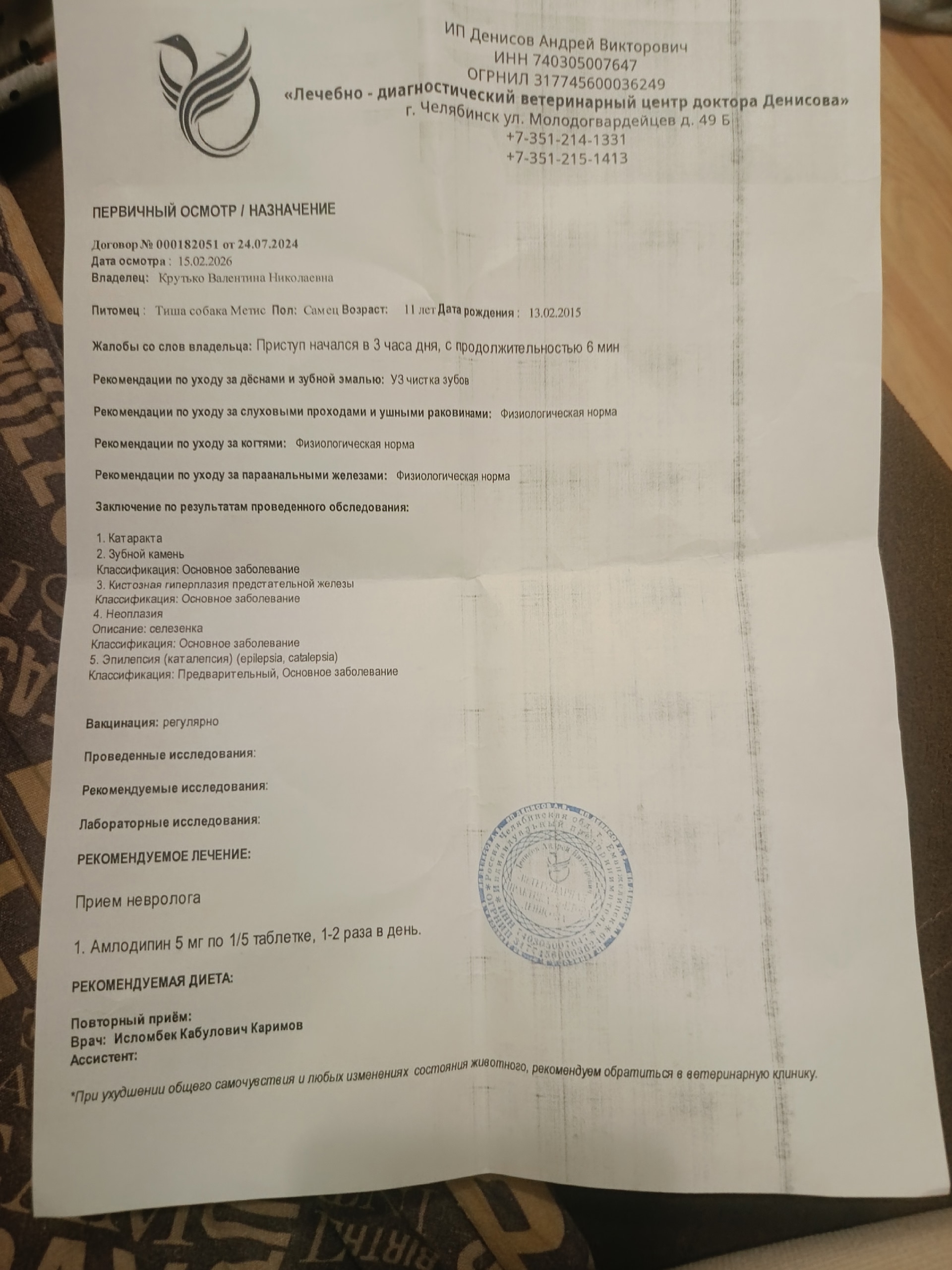 Я сейчас хочу показать некоторые выписки из нашей ветеренарной клиники
