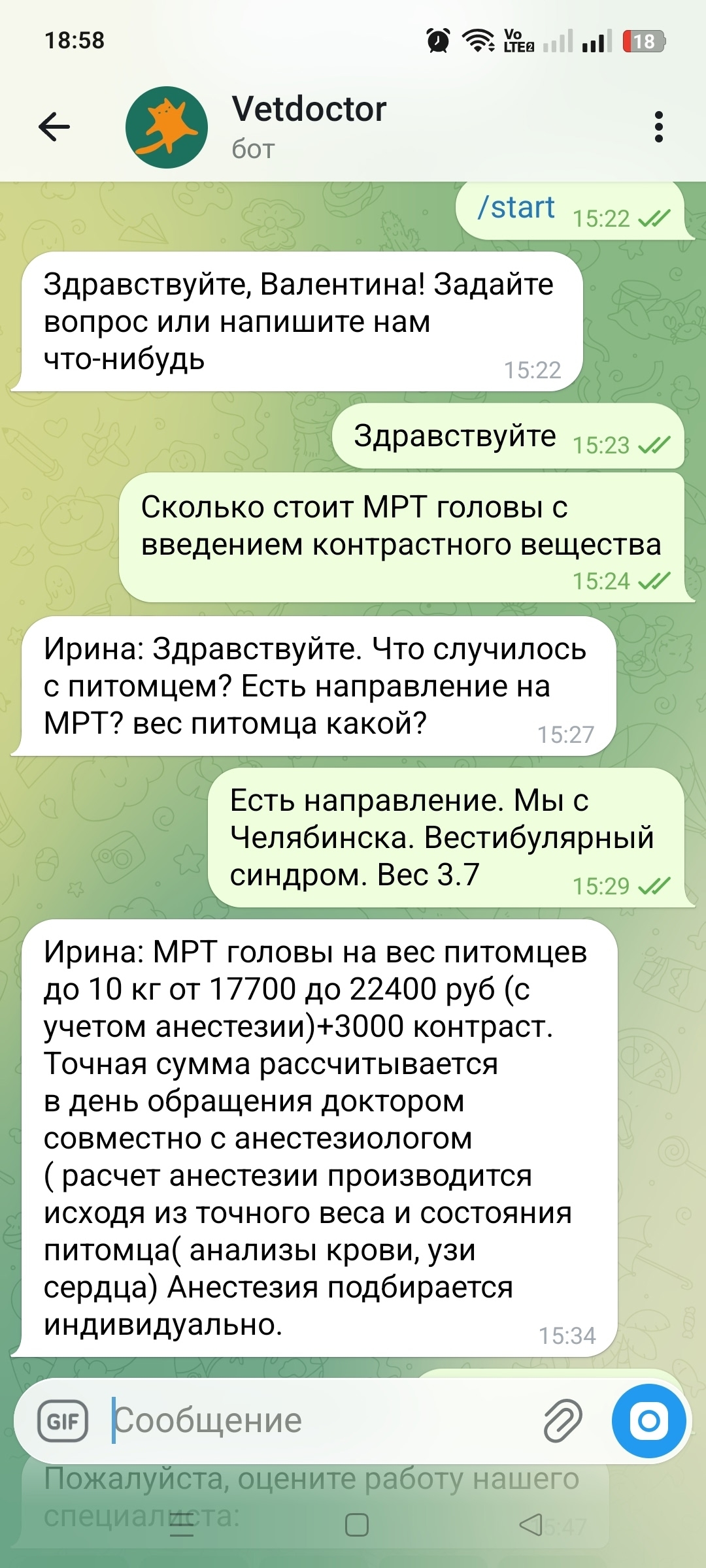 Но при консультации через бот мы узнали, что стоимость дороже в 3 раза
