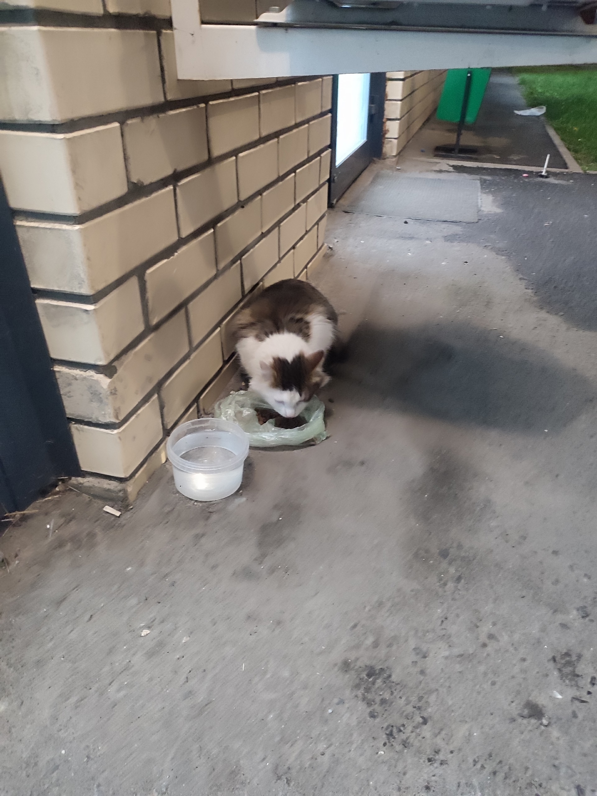 Вторую неделю на Народного ополчения, 1 появляется кот/кошка (пол неизвестен). Днём подкармливаем его, ночью куда-то изчезает (или его куда-то запускают, или ночует в домике, сооруженом жильцами неподалёку). Видно, что домашний. Если есть хозяева, или кто готов приютить беднягу звоните