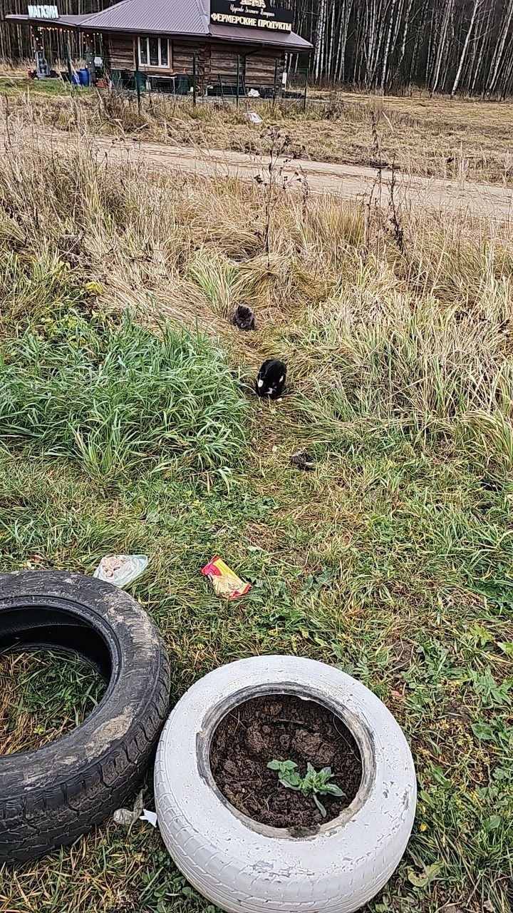Выкинули котят на заправке Тивойл, в сторону Сергиево Посада, адрес Холмогоры, 1. Для ориентира там есть фермерский магазин. Строений вокруг нет. Напротив, для ориентира, с другой стороны в сторону Москвы, заправка Нефтьмагистраль. Котята убегают. Фото только такое. подростки. Красивые. Со слов сотрудников, их трое. Видала двоих.