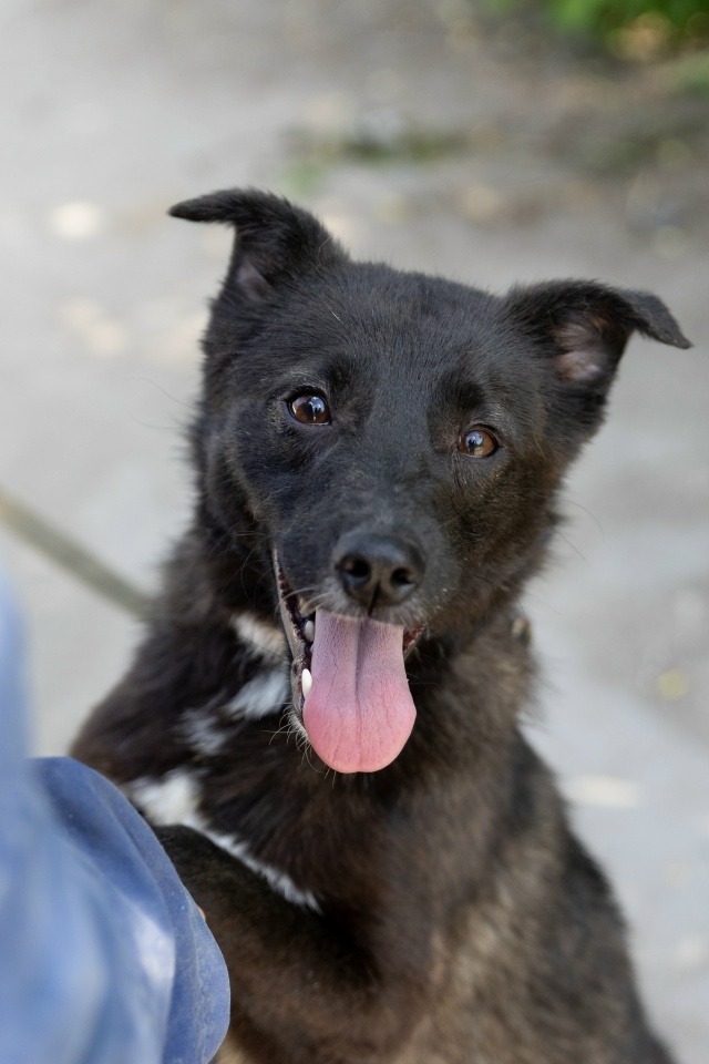 Жулечке всего год, она осторожна, но не бояка, и к сожалению, не очень любит поводок, но обожает просто рядом бегать на прогулке, не отбегая далеко. Жуля очень дружелюбно настроена ко всем!