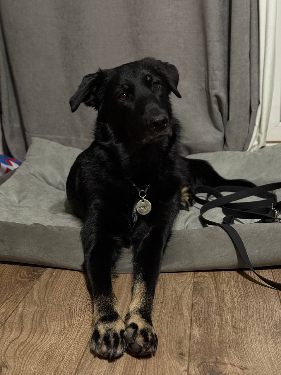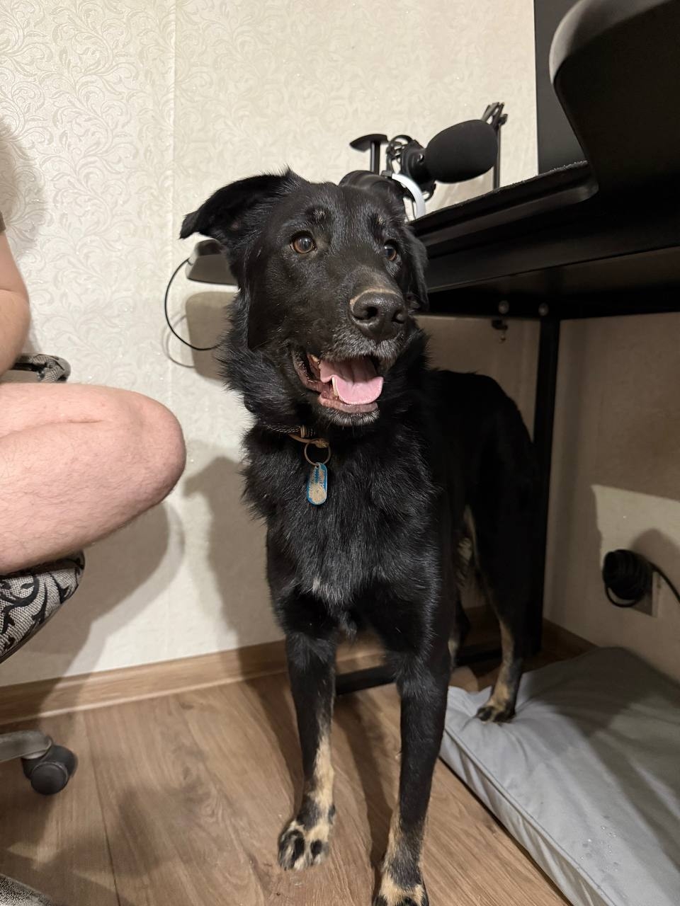 Отстегнулся от поводка , испугавшись падающего снега с крыши, убежал наш выпускник.