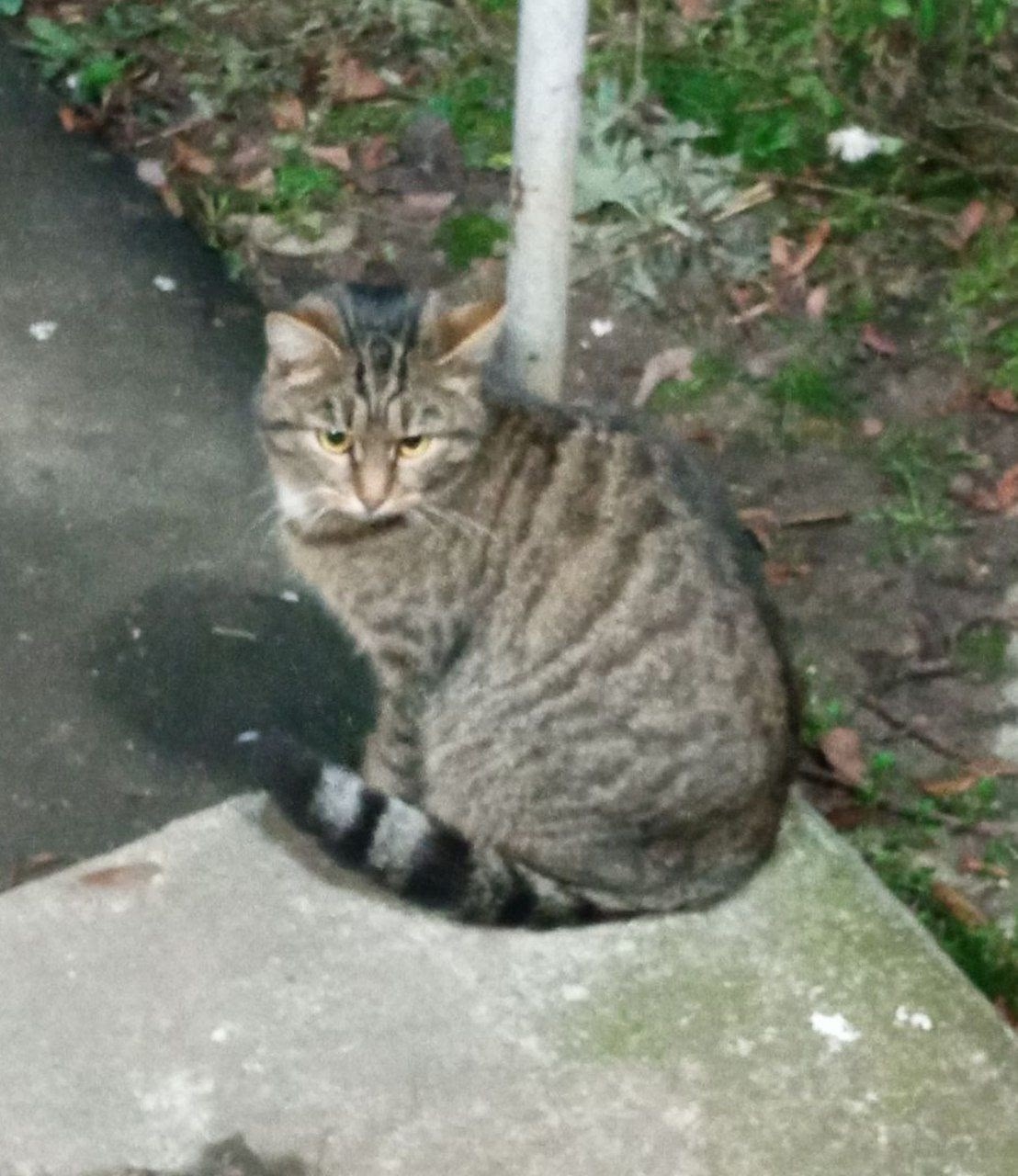 В мкр-не Климовск у одного из жилых домов по проспекту 50 лет Октября во 2й половине декабря 2025г. появилась кошка, окрас табби (шпротный). По виду домашняя (чистая, ухоженная) и очень контактная (позволяет себя гладить, не боится забегать в подъезд). Такое впечатление, что потерялась и очень хочет домой.