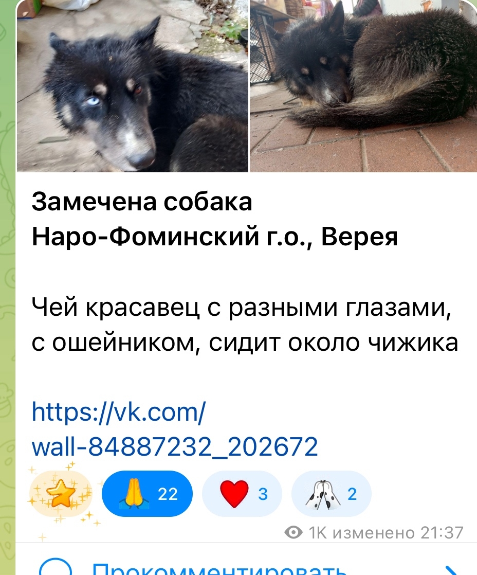 Замечена собака! Найдись пожалуйста.. Верея Автор admin Опубликовано Ноя 15, 2025 0 0 Поделится WhatsAppViberTelegramVKOK.ru Замечена собака! Найдись пожалуйста хозяин! https://vk.com/wall-84887232_202672 0 0 Поделится