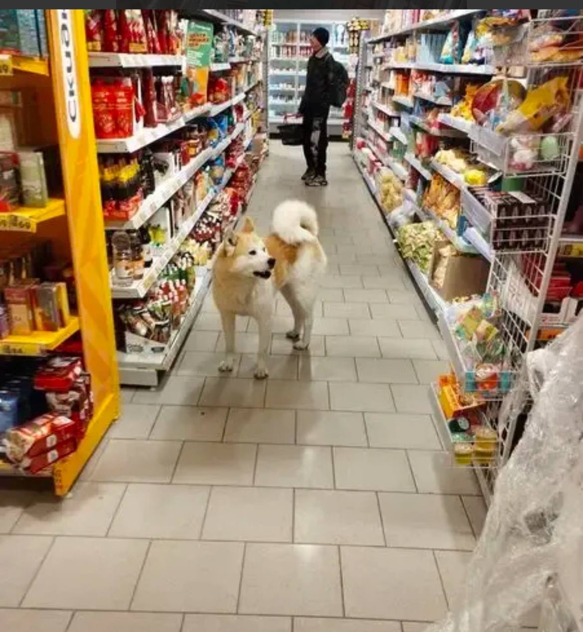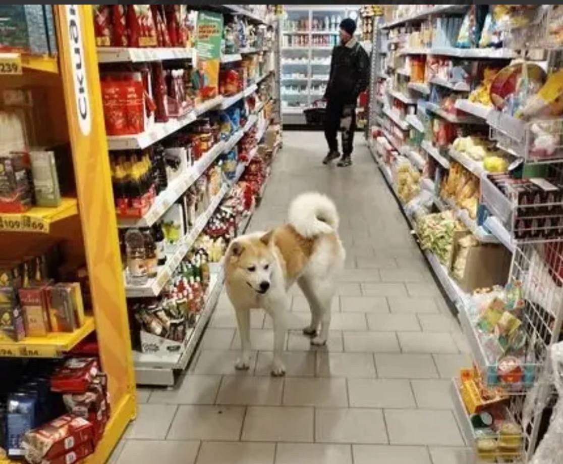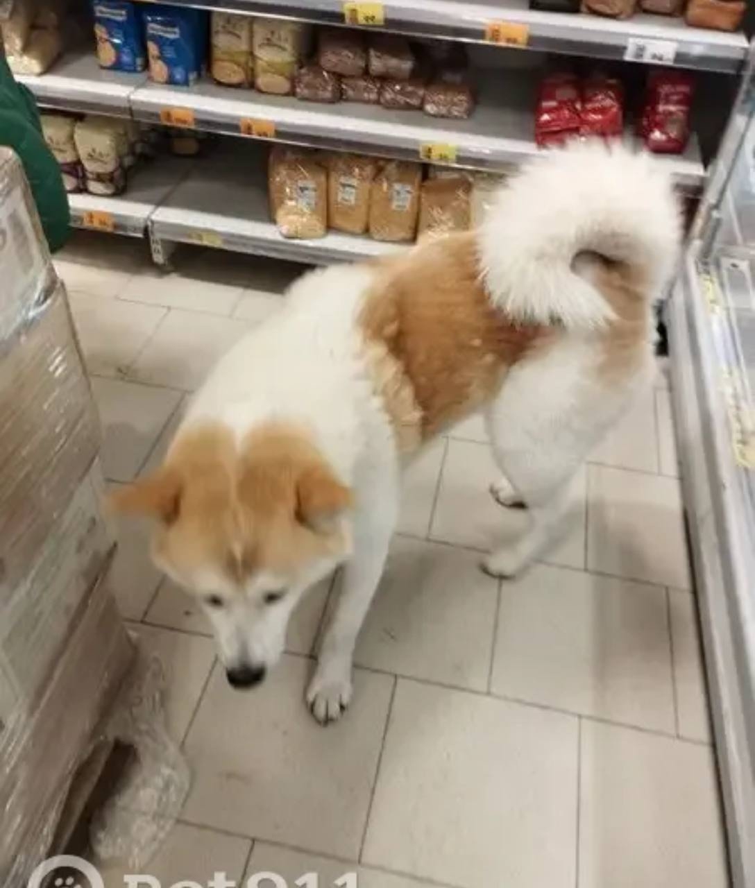 Акита ину. Видела в Марфино в Пятёрочке. Вес около 50 кг. Спокойная. Не ранена. Ошейника нет.