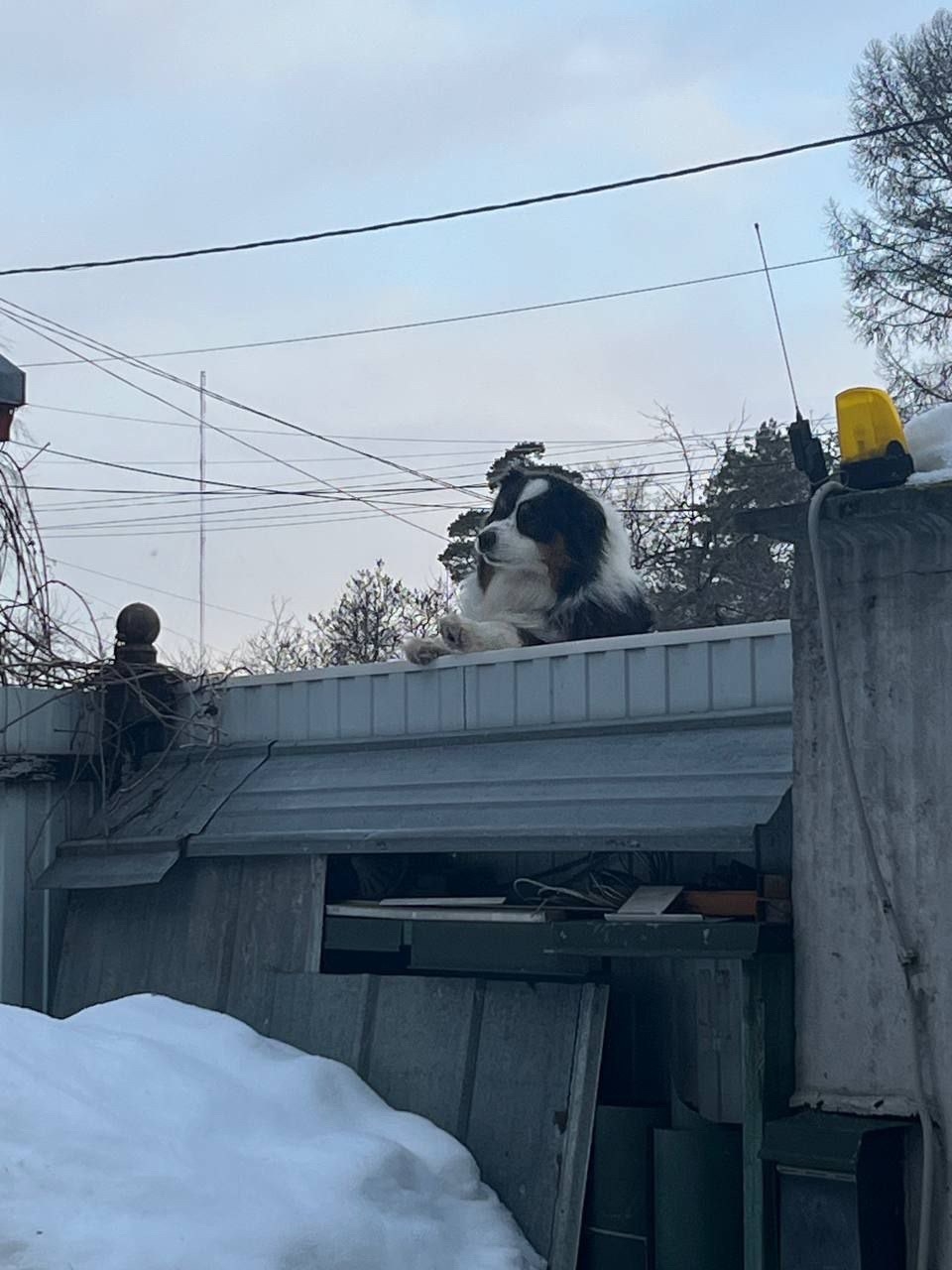 Аусси. Особые приметы – без хвоста, оранжевый ошейник (или с оранжевыми вставками, точно не разглядела).