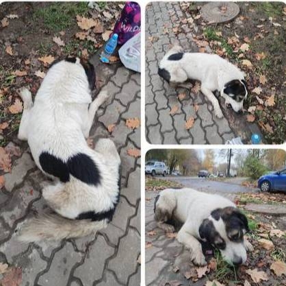 Никто не знает чей пес? Хромает на лапу, очень голодный, лежит у дороги на ул Дзержинская