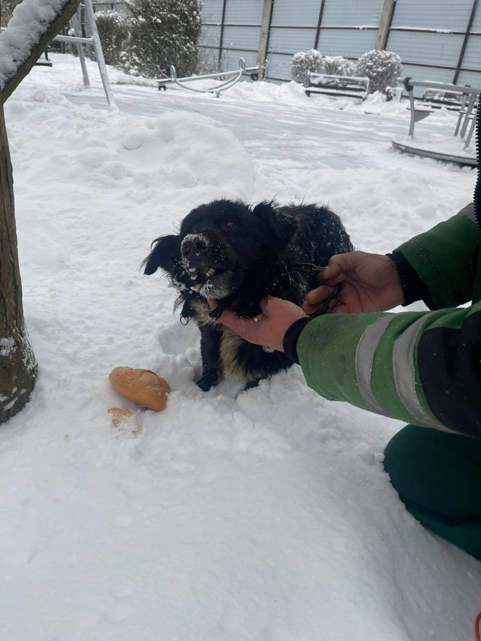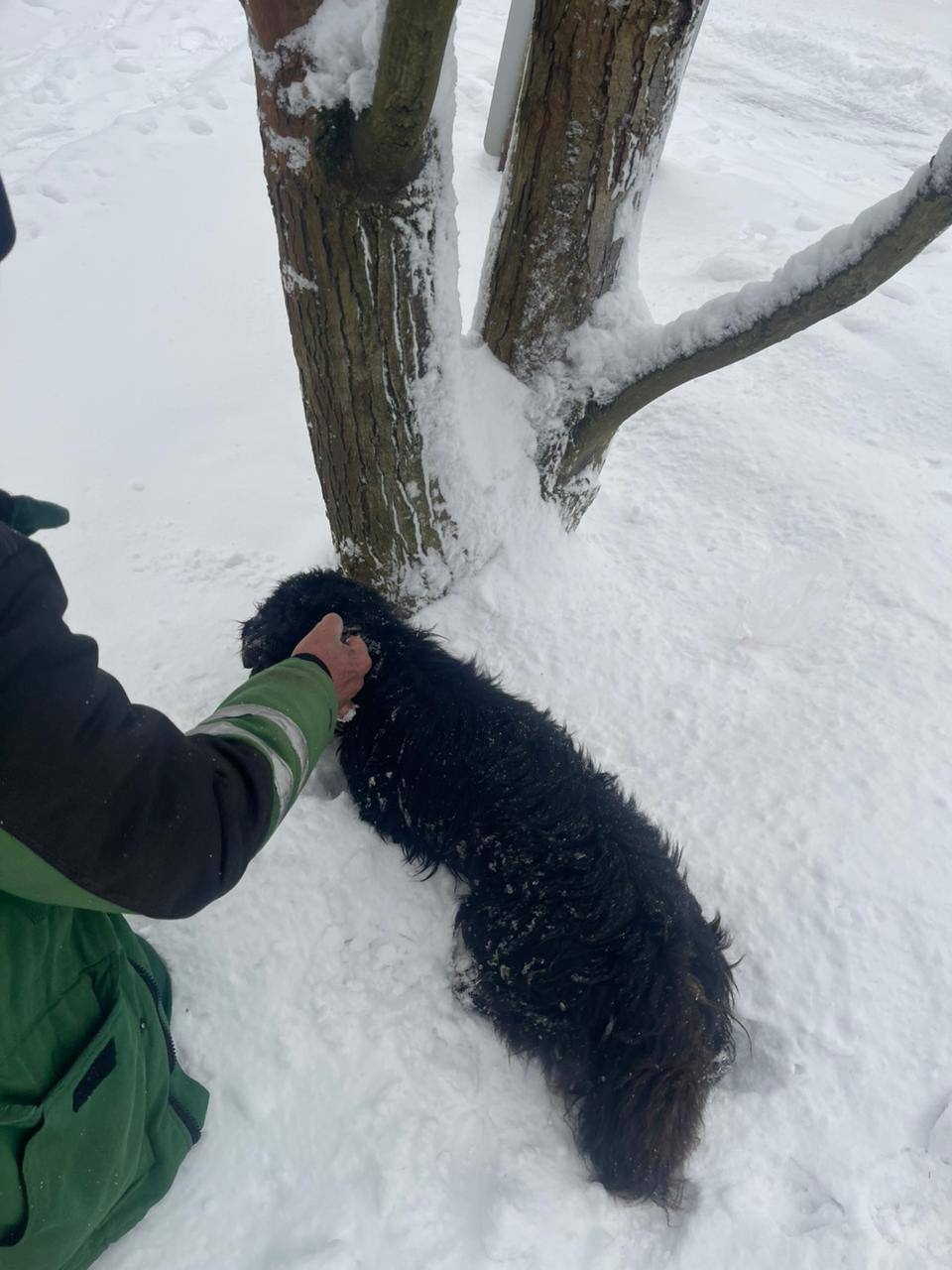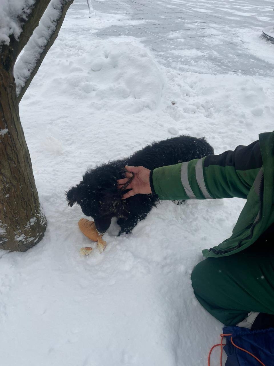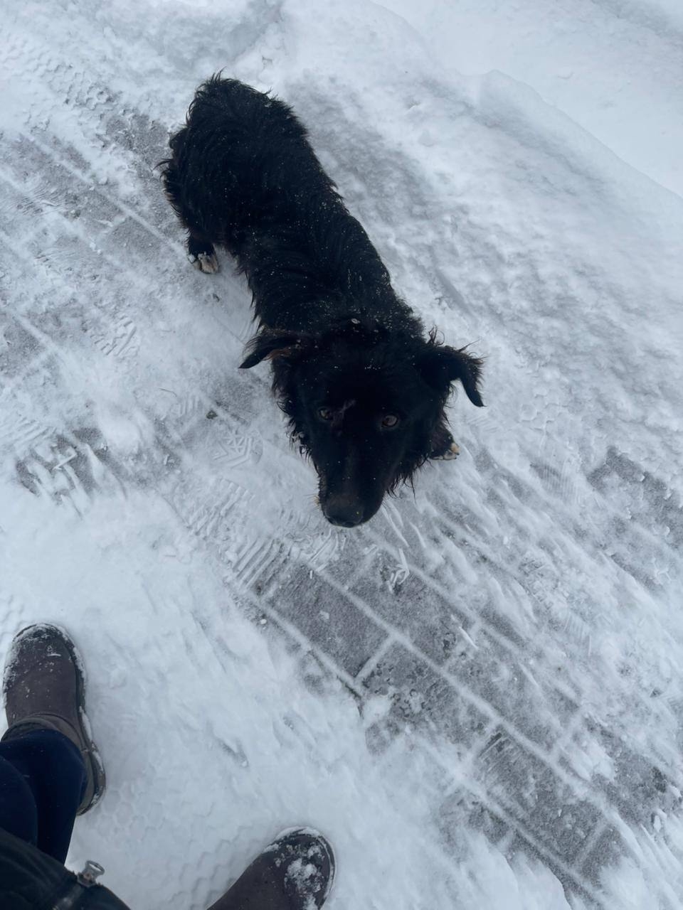 Сидит на Филипповском пруду. Замерзшая. Может чья-то? С ошейником и цепью. Скиньте пожалуйста по чатам.