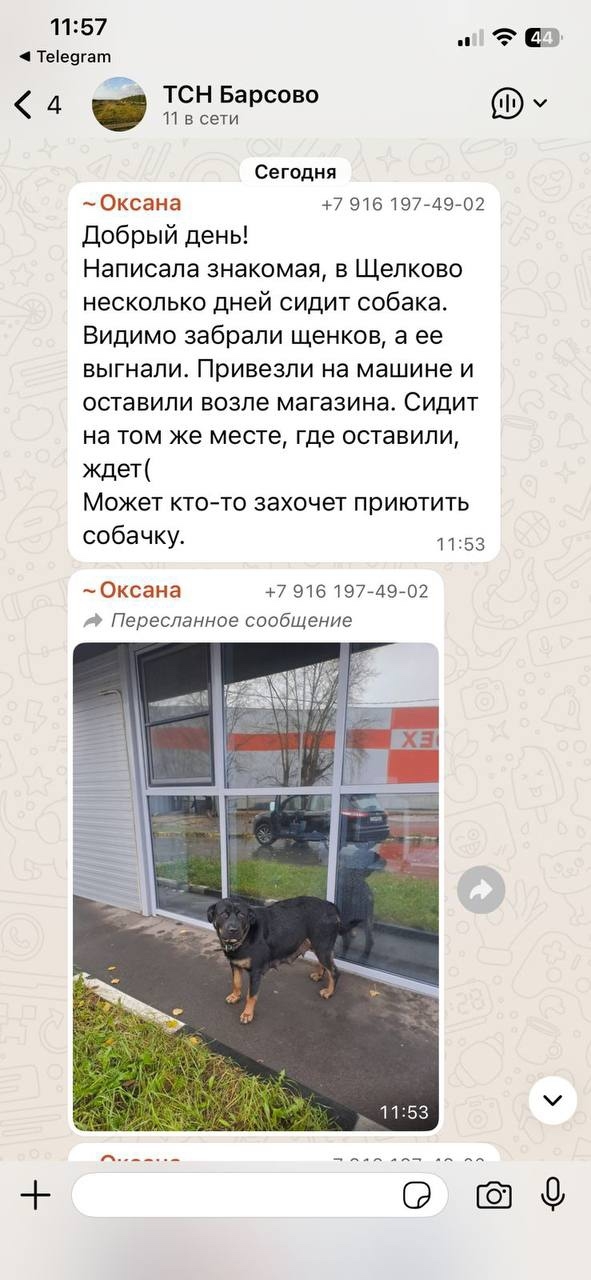 Район города Щёлково, к магазину привезли и высадили собаку, скитается уже неделю, с сиськами, но щенков нет