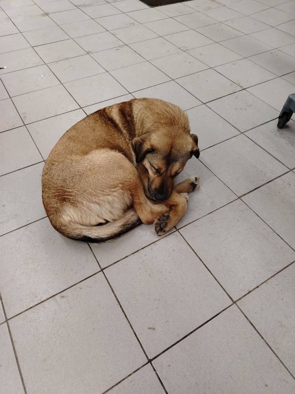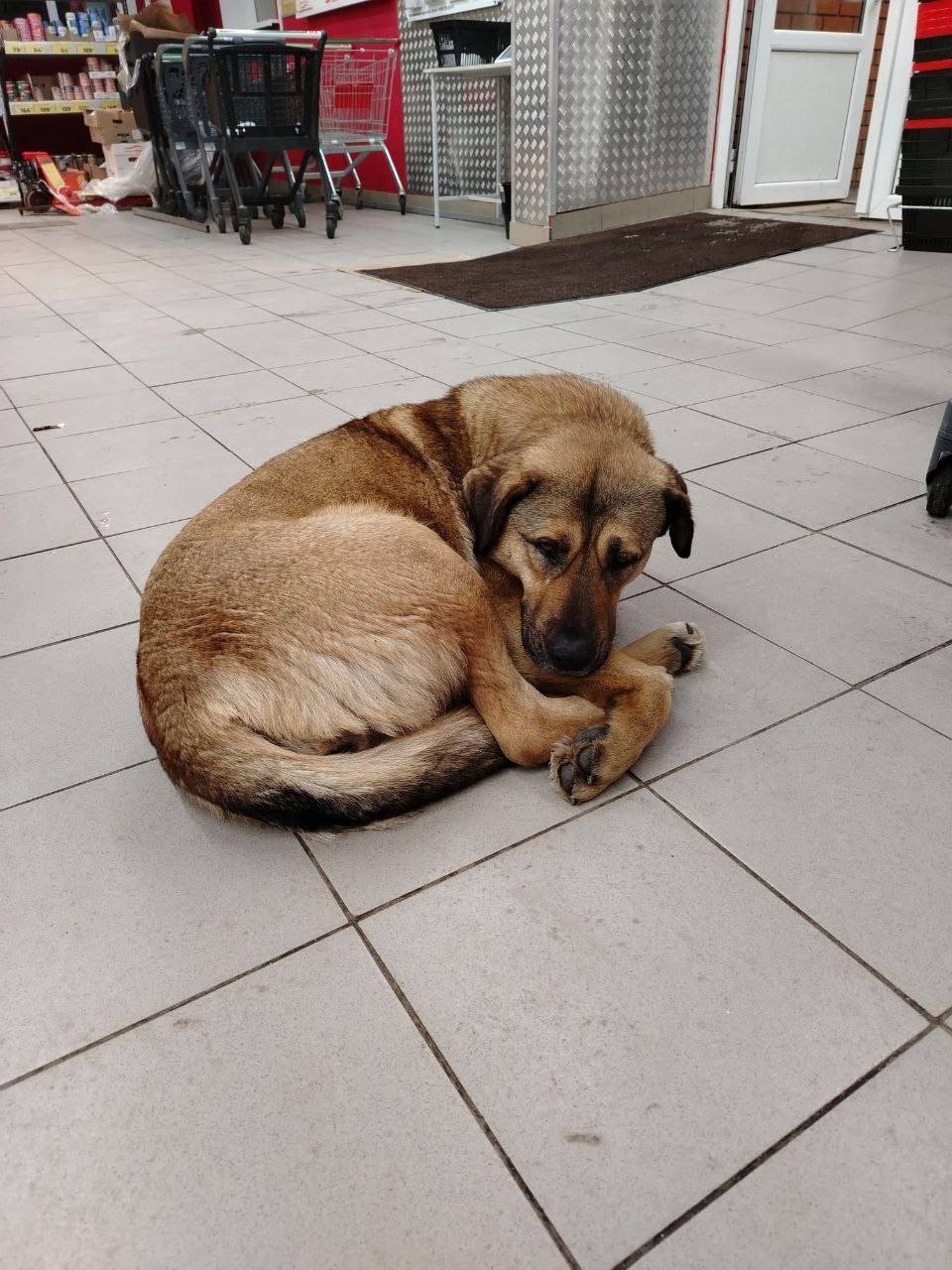 В магазине ✴️ на пр.Мира спит пёс, не понятно кабель или сука. Продавцы говорят хромает, зашёл и лёг. До закрытия не выгонят.
