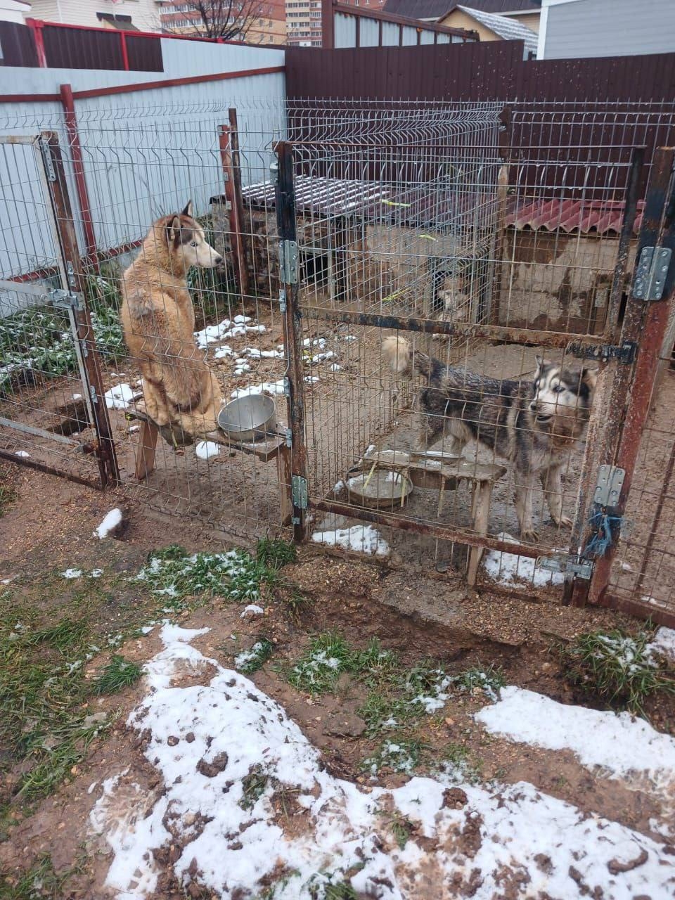 В дмитровском районе сидят 3 хаски и одна дворняжка.