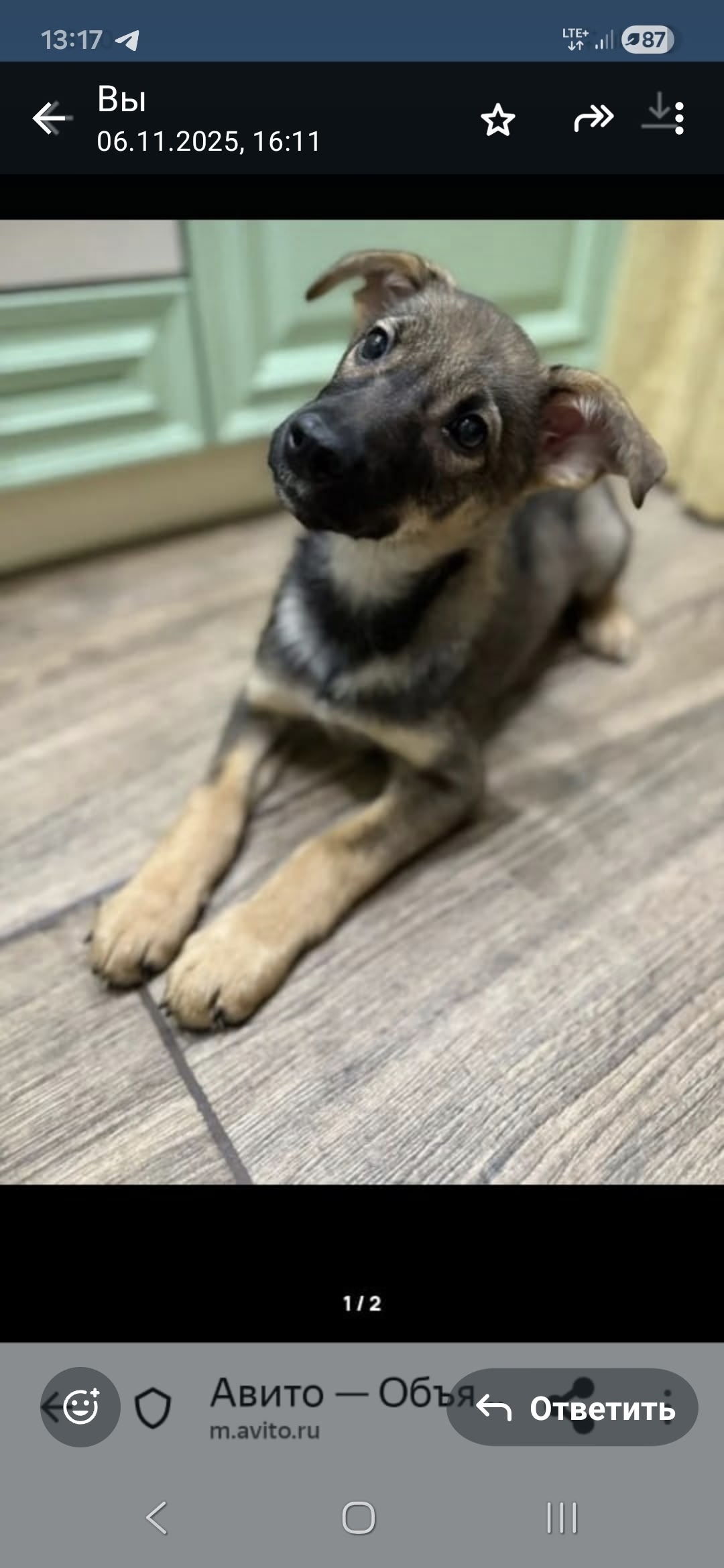 Сама добрая, к людям подходит, стройная, мордочка чёрная, уши торчком.