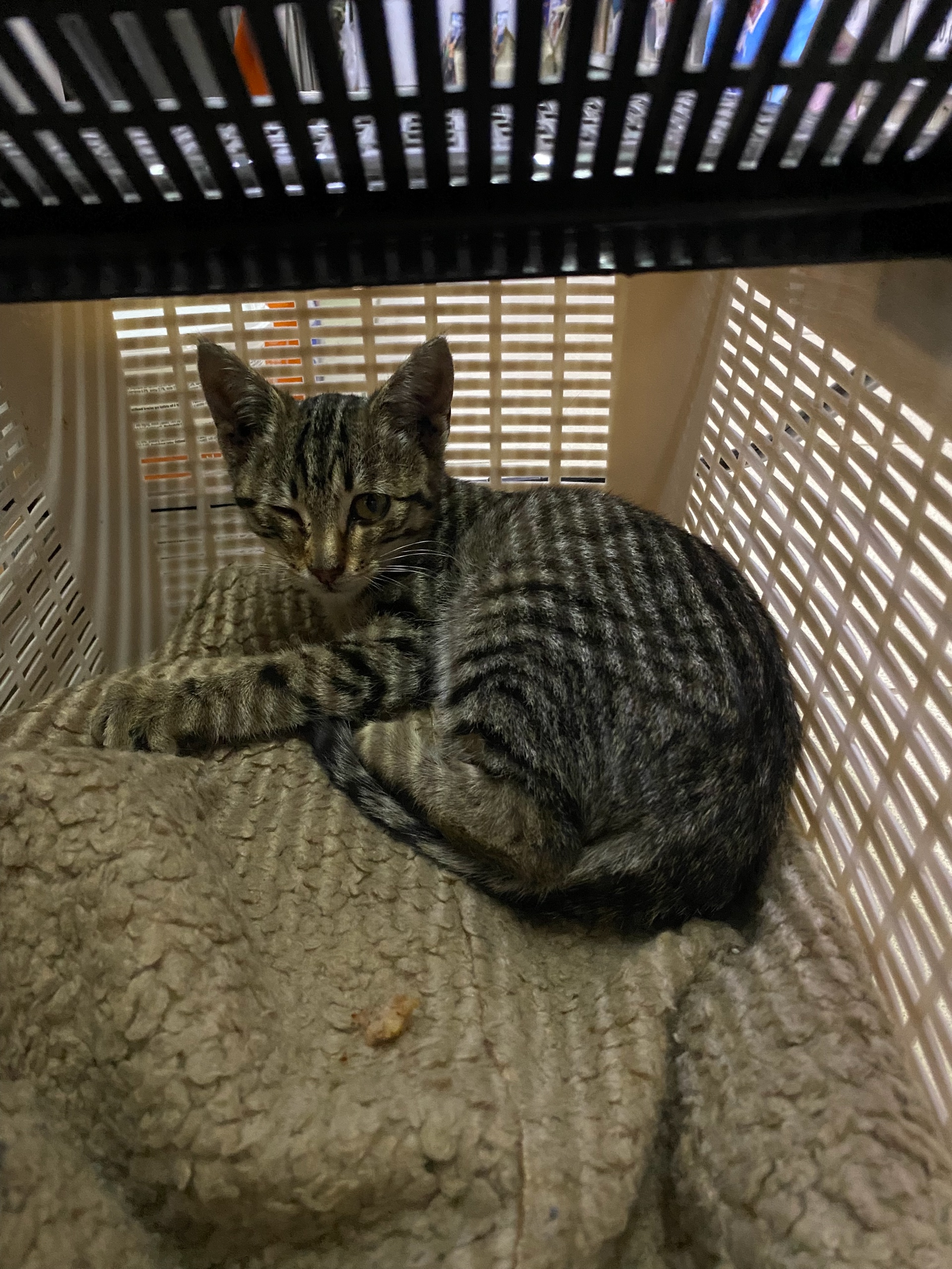 Здравствуйте, может кто нибудь взять на передержку эту кроху? Малышка два дня сидела в подвале, застряла, но мы смогли ее достать. Я взяла ее до вечера к себе на работу, потом не знаю куда ее деть..