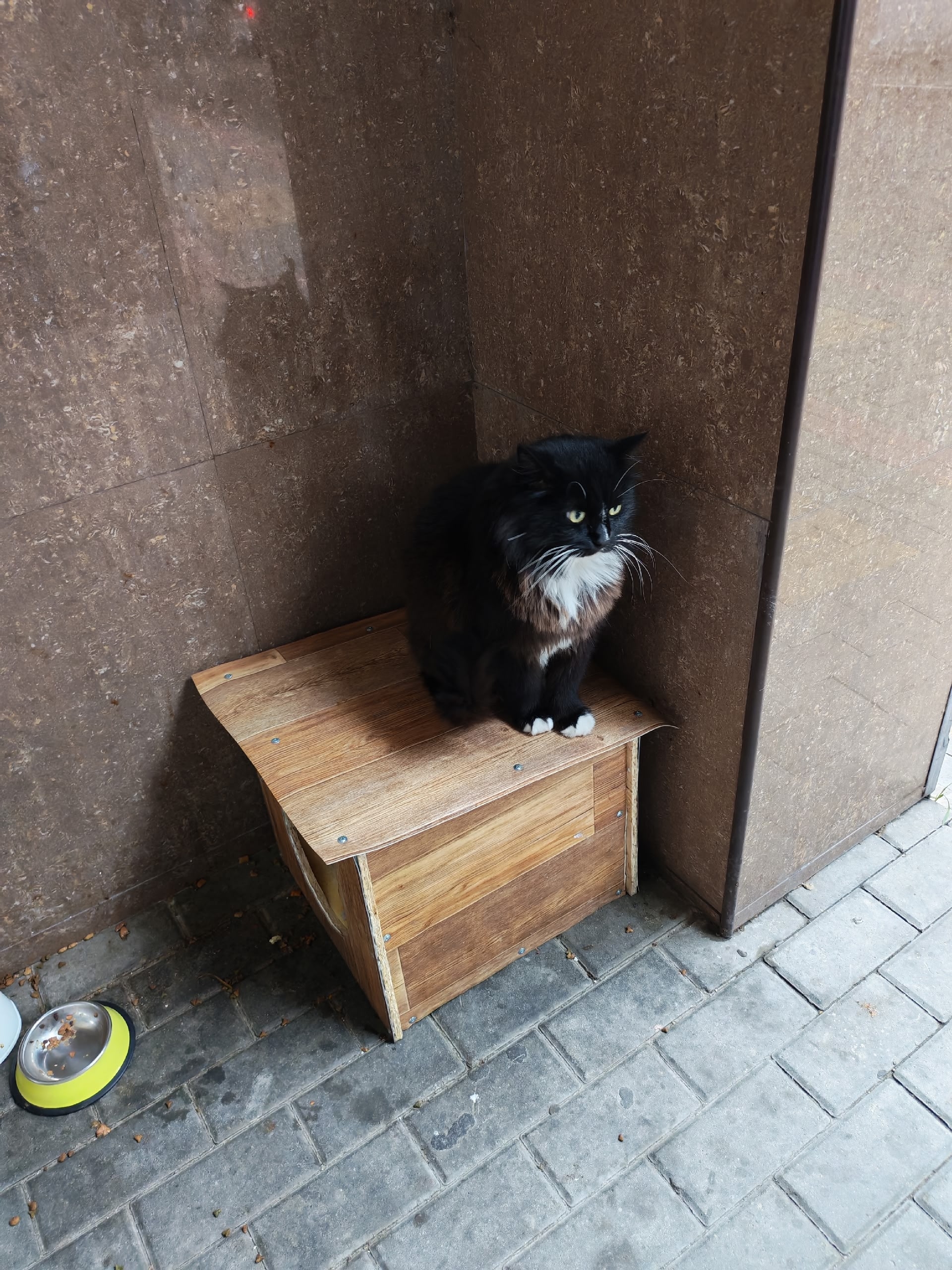 Кот кастрирован, не ГУЛЯЩИЙ. Каждый день Обитал то около мед центра, в течении многих лет, то возле пекарни. Немного пугливый, в чужие руки не пойдёт, только к своим.