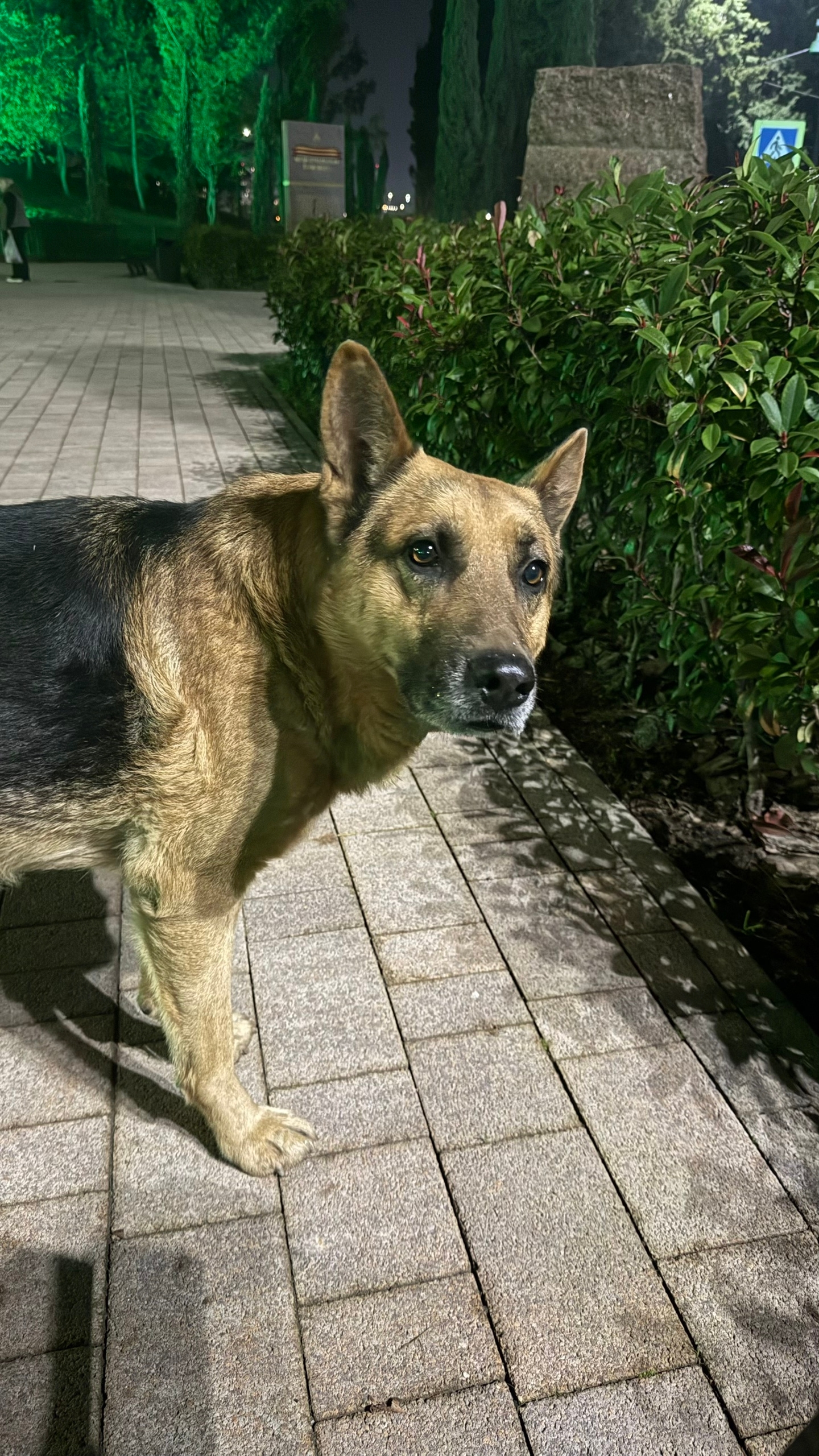 Здравствуйте, в районе Момориала найдена собака. По виду овчарка, кабель, очень худой. Растерян и напуган, не может найти себе место. Подходит ко всем прохожим и скулит.