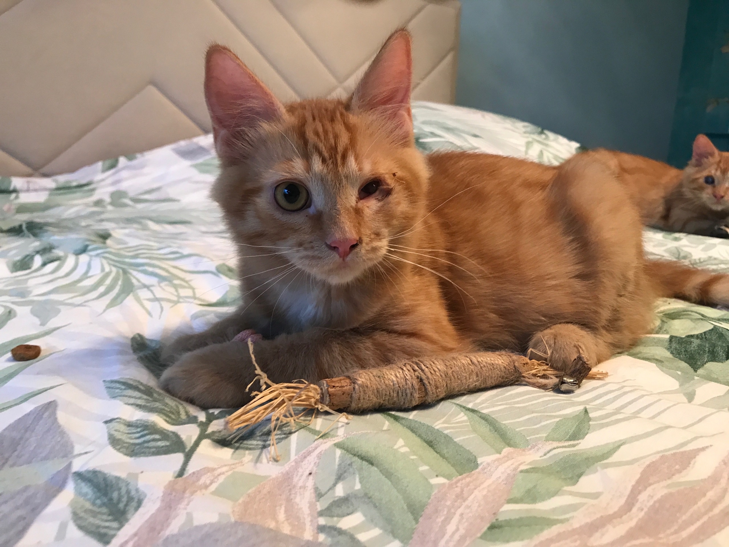 Обработан от всех паразитов, лоток на 5+, контактный, ласковый. Возраст примерно 4-5 мес.